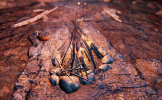 体を休める寝床のようなものと、アイロンみたいな変なマークの焚火をみつけたので近づいてみた。