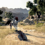 まずは野生馬をみつけたら、逃げない程度に距離をとって、リングメニューに登録しておいた投げ縄をクリックして使用。
