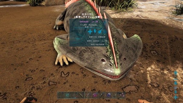 家の脇の滝を登ってちょっと行ったところに、ビーバーが10匹ぐらいいる池があるので、木材要員としてテイムしにいきました。共同巣なのかやたらにでかくて、上に飛び乗らないと覗くこともできない。かわいい顔してビーバーの攻撃力って結構強いので、一斉に...