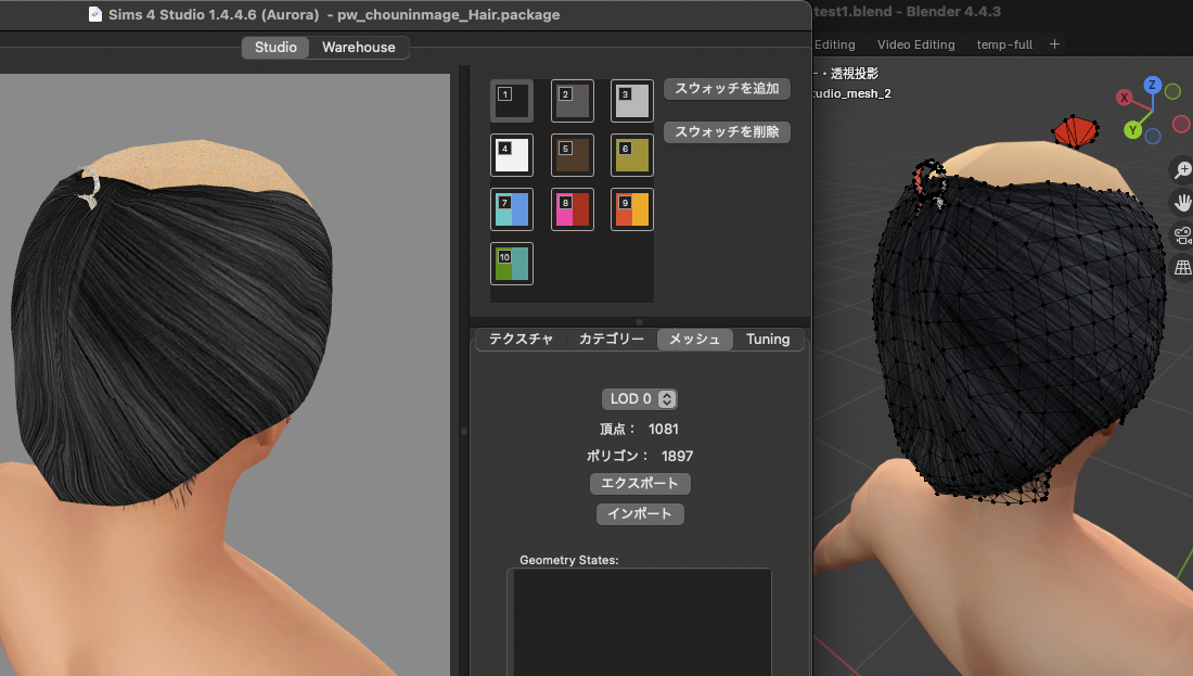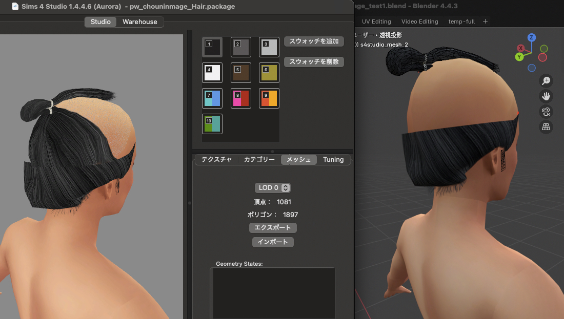 ってことは、頭から生えているようで、その部分のメッシュではなかったと。