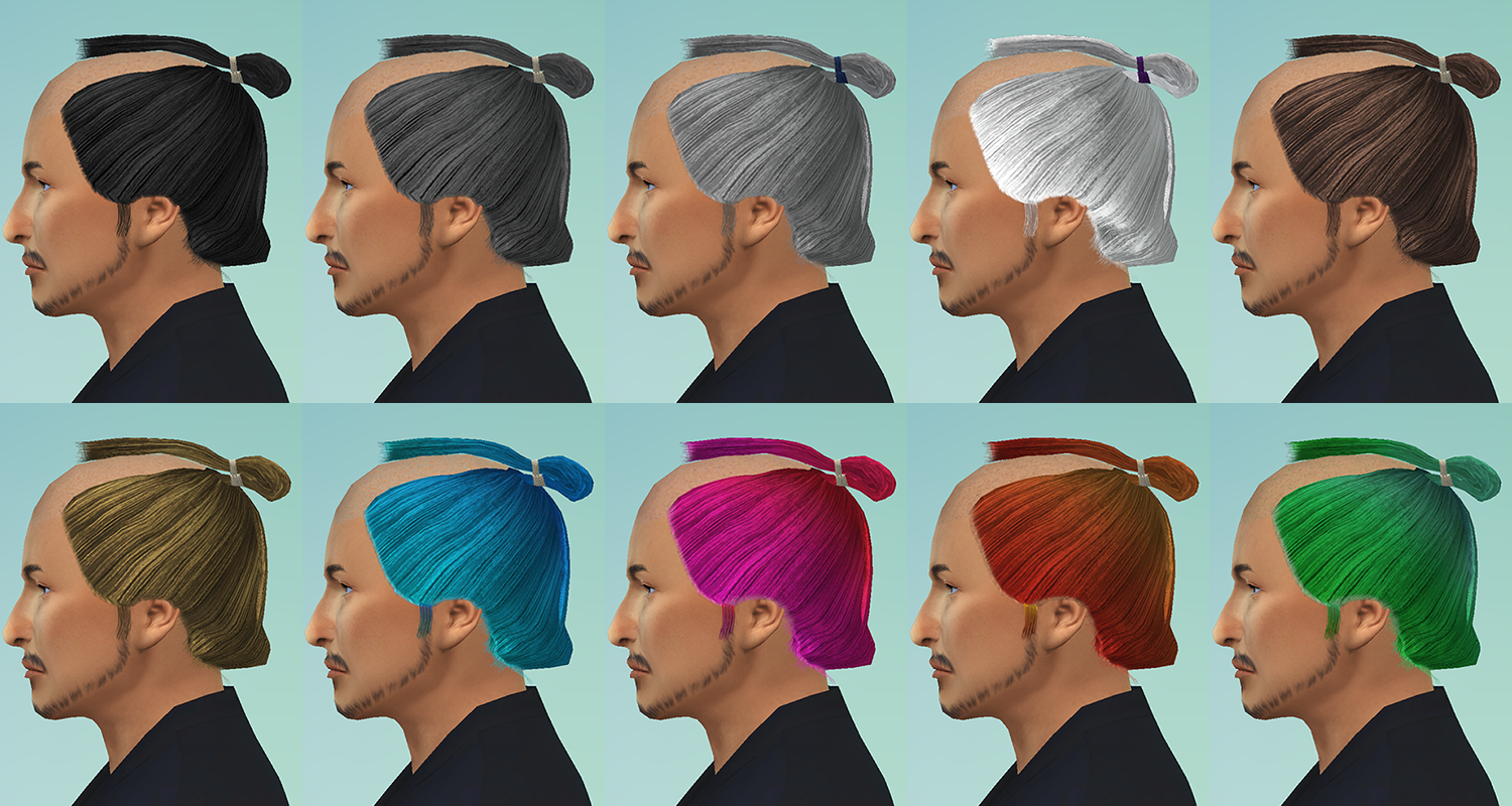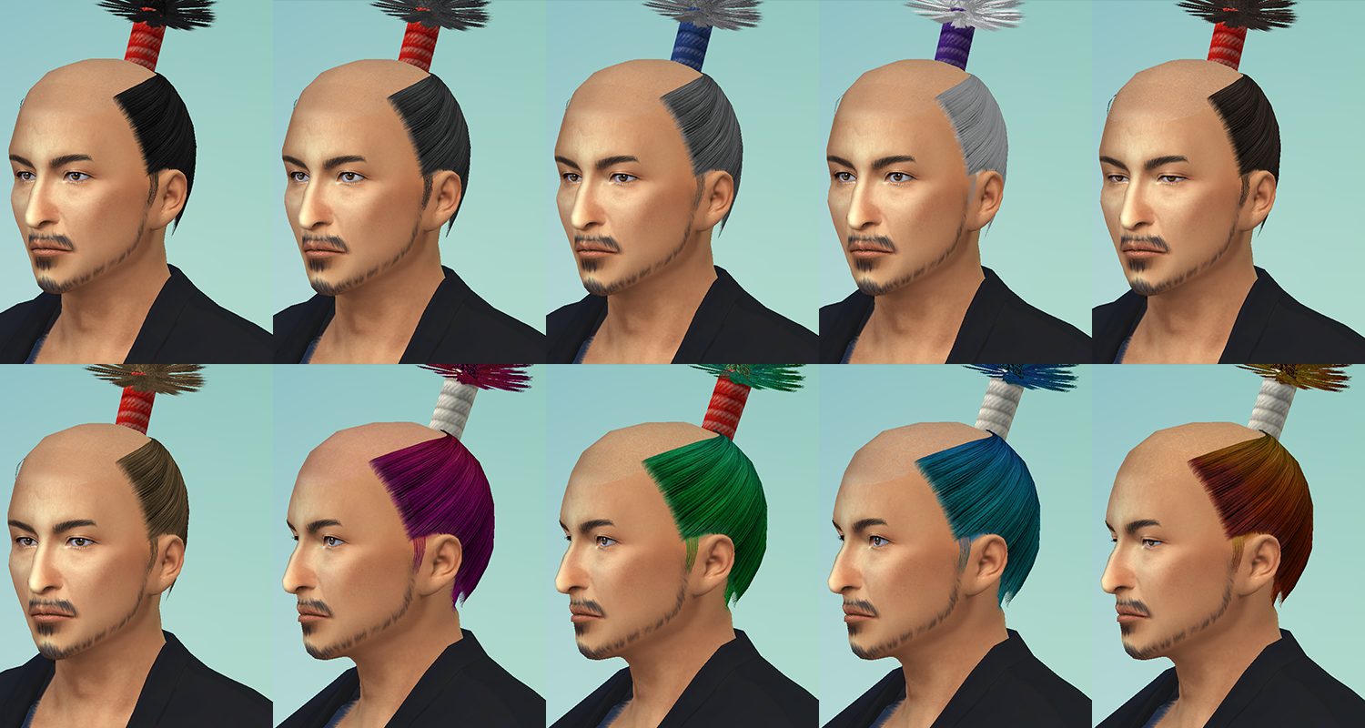 茶筅髷のほうも、だいたい町人髷と同じカラー展開で10色。別に作ったので微妙に色は違いますが。