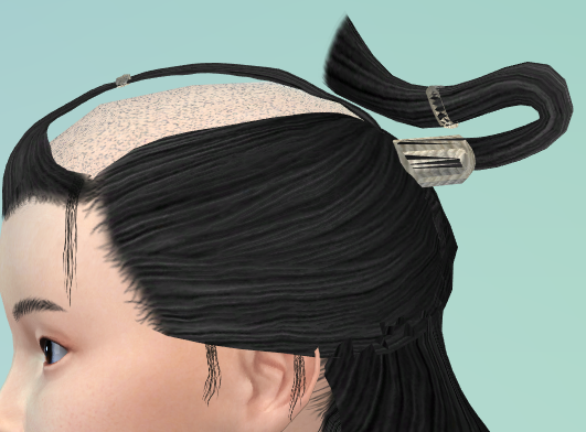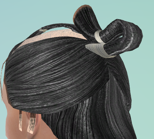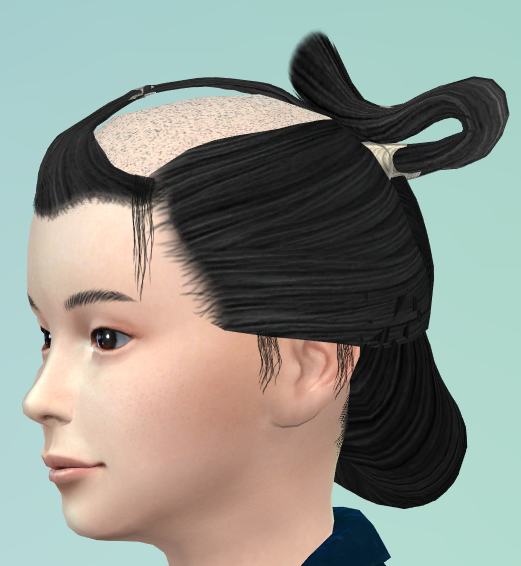町人髷と同じように髷の周囲を包むように紐部分を作ったが、前より紐の幅が広いせいか脇からみても中途半端に透明化されてしまった。