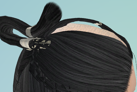 また、三角がちゃがちゃが表示され、後部から紐の輪郭が透けて髷が透過されてしまう。