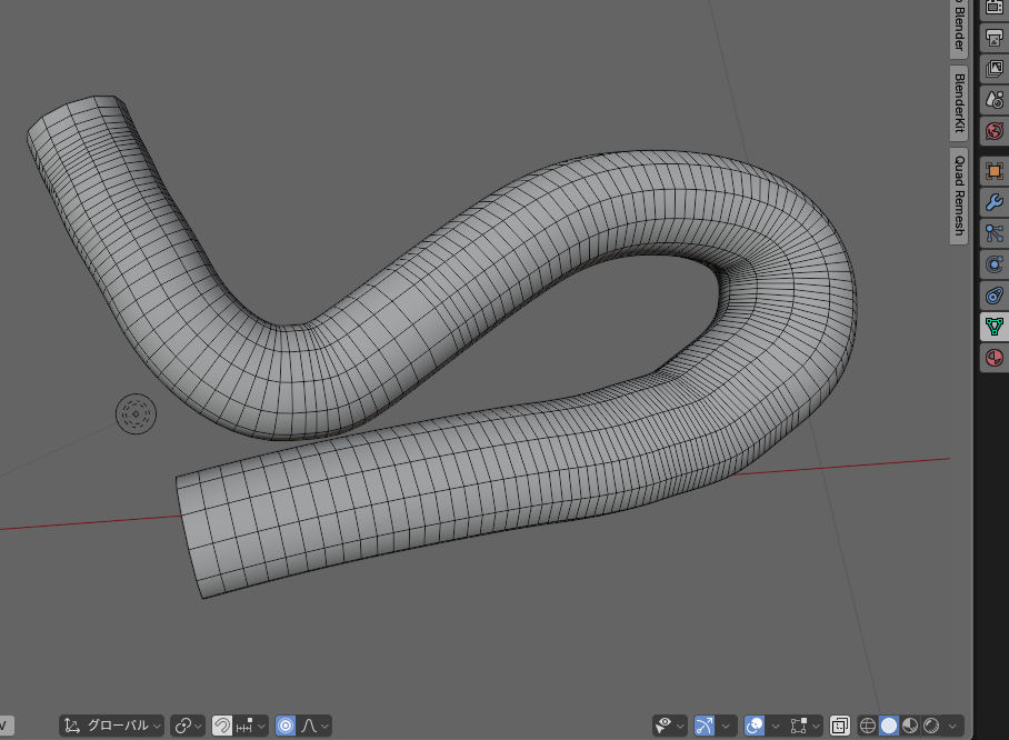 まずはなんとなく基本的な形を作ったら、プロパティのところで、「ジオメトリ」「丸め」で立体的にする