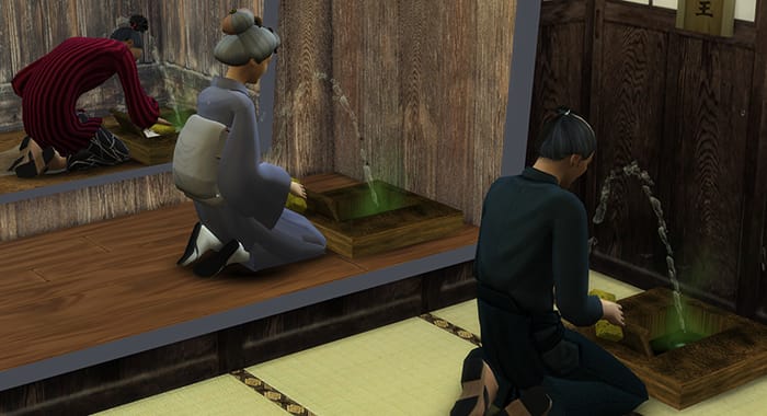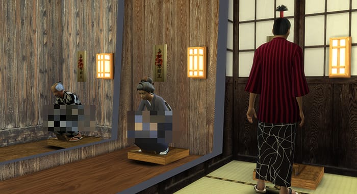 拡張パックのSnowy Escapeでだいぶ和風のアイテムが増えたのはありがたいのだが、なぜかトイレは普通の洋式のみ。