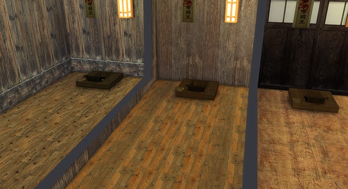 しかし、なんか床の色と本体がなかなかしっくりいくものがない。畳はありだとは思うけど、庶民は板の間だよね。やっぱり。同じテクスチャで床も作ってみることにした。