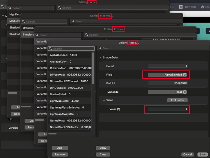 これはやはりメッシュが全部1つに収まっていて、別シェーダーを当てられない状態にも問題があるだろう。