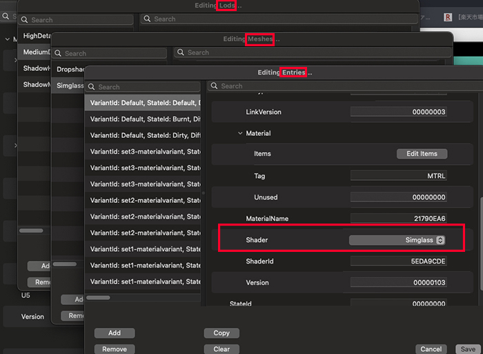 もはややけくそになって、シェーダー設定のできる項目を、HighとMiddleModelの上から下まで全部Simglassにしてやった。