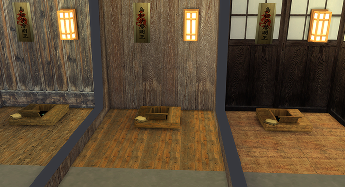 しかし、なんか床の色と本体がなかなかしっくりいくものがない。畳はありだとは思うけど、庶民は板の間だよね。やっぱり。同じテクスチャで床も作ってみることにした。
