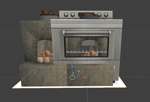 そこで本来1マスのコンロを無駄に2マスに広げて片側は使わないようにしようとしたんですが、こういう実際に使用するものはリグやらアクションポイントやらがいっぱい設定されていて調整が難しい〜〜〜〜〜のです。