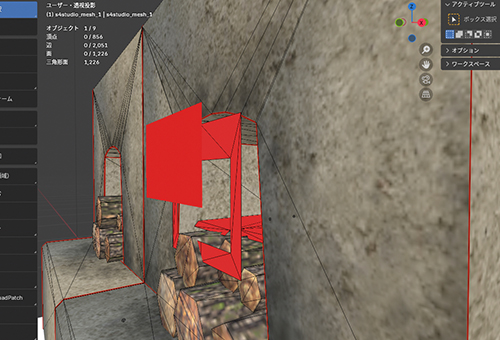 まずは元となるメッシュを重ねてだいたいの位置を確認。不要なメッシュはざっくり削るがアクションに関係ある部分はとりあえず残しておく。