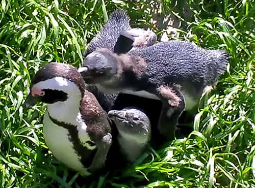 まだ毛が抜け替わらない子供ペンギンも多数いました。