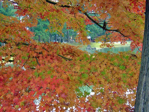 静かに広く横たわる水辺に映える紅葉というのはやっぱりいいもんですな。