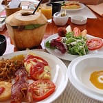 今回の旅行は朝食だけついているのだが、昨日は移動で疲れたのと遅かったので、のんびりと遅い昼食兼用の食事となる。朝はビュッフェだが、11時くらいまでOKらしい。