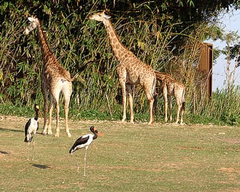 まずは草食系の雑居ゾーン。オリックスやレイヨウなどの偶蹄類がメインですが、間にラクダとか鳥とかもうろついていて国籍不明気味(ーー;)