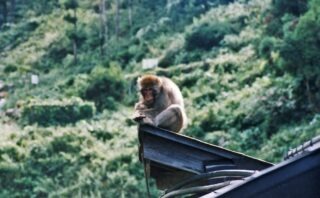 玄関を出てすぐ右にすすむと、ホテルの裏手から近道があります。ただし、細い山道のようになっているので歩きやすい靴の方がいいかも。ひとりずつ通れるぐらいに雑木林を切り開いたという感じ。