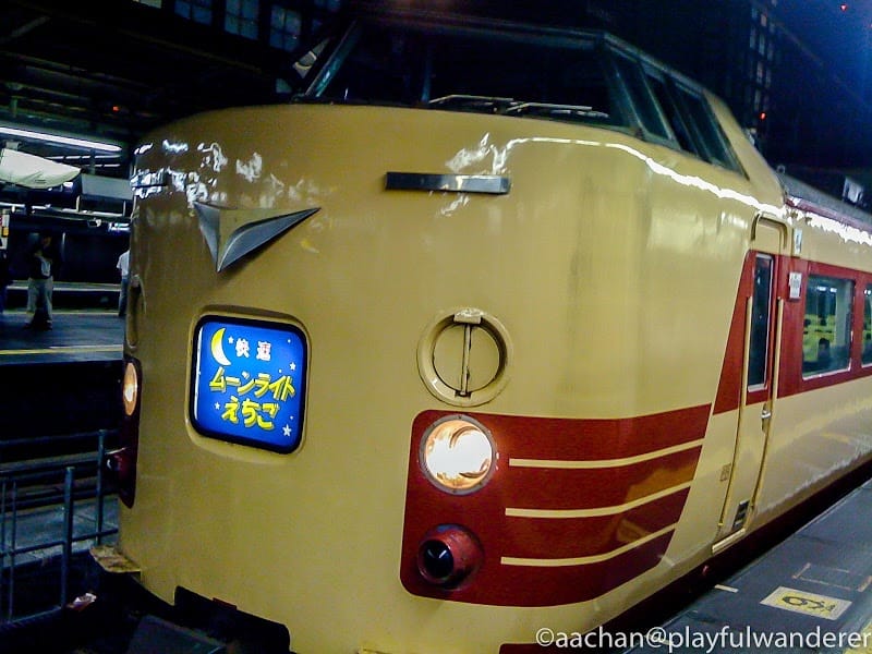 23:10 新宿発 ムーンライト越後 (日付の変更ポイント高崎まで先に切符購入)