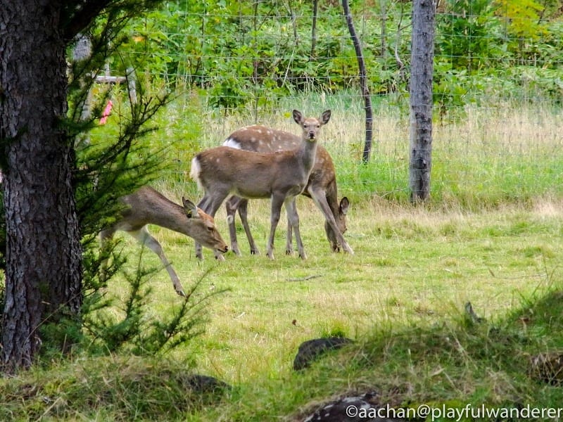 いたよいたよここにも。道路から見下ろす形で斜面にいる群れを発見。相方は野生の鹿をみたのも初めてということで、興奮しておりましたが、大きな声だしちゃだめです!(笑)