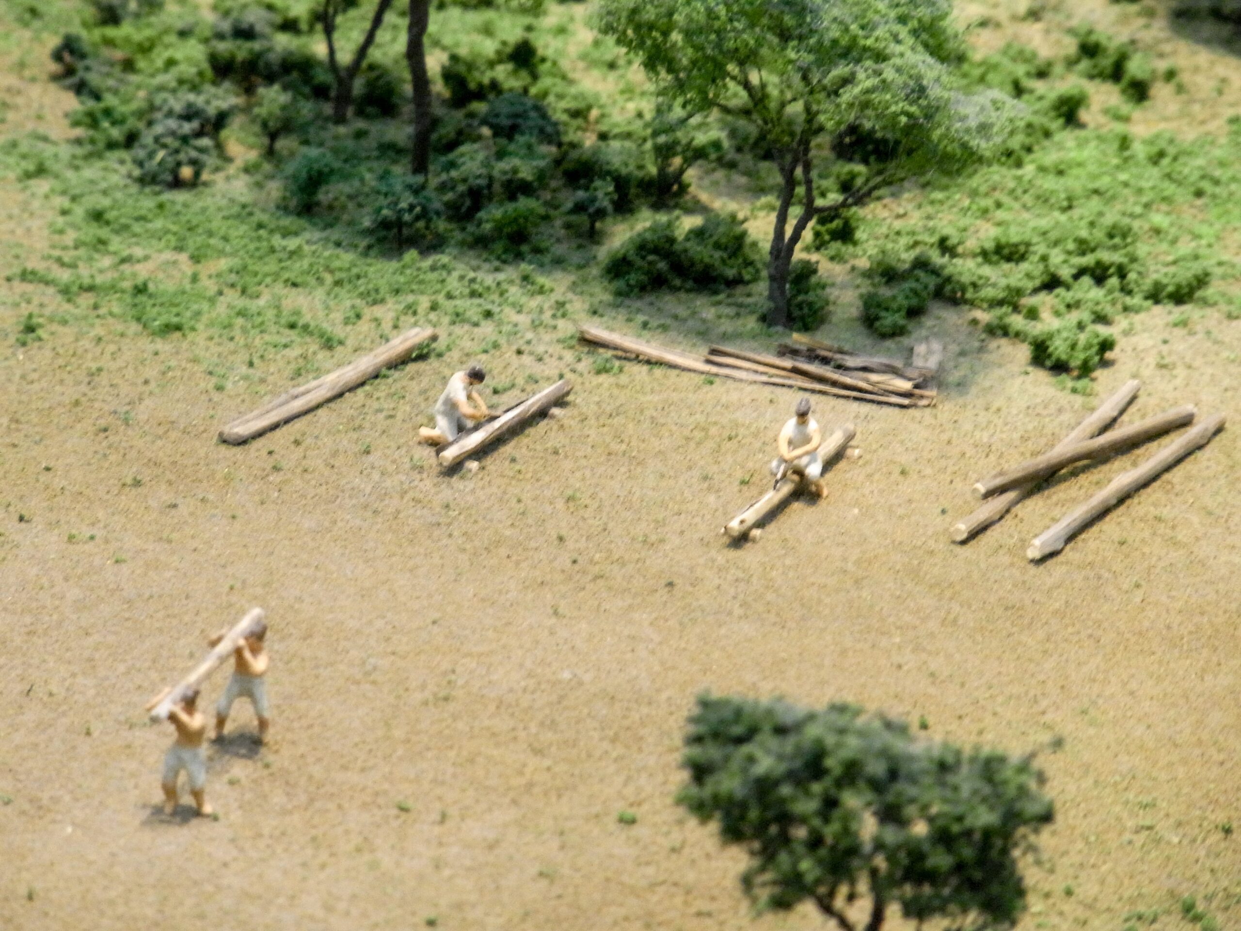 材木を切り倒して運ぶ人々