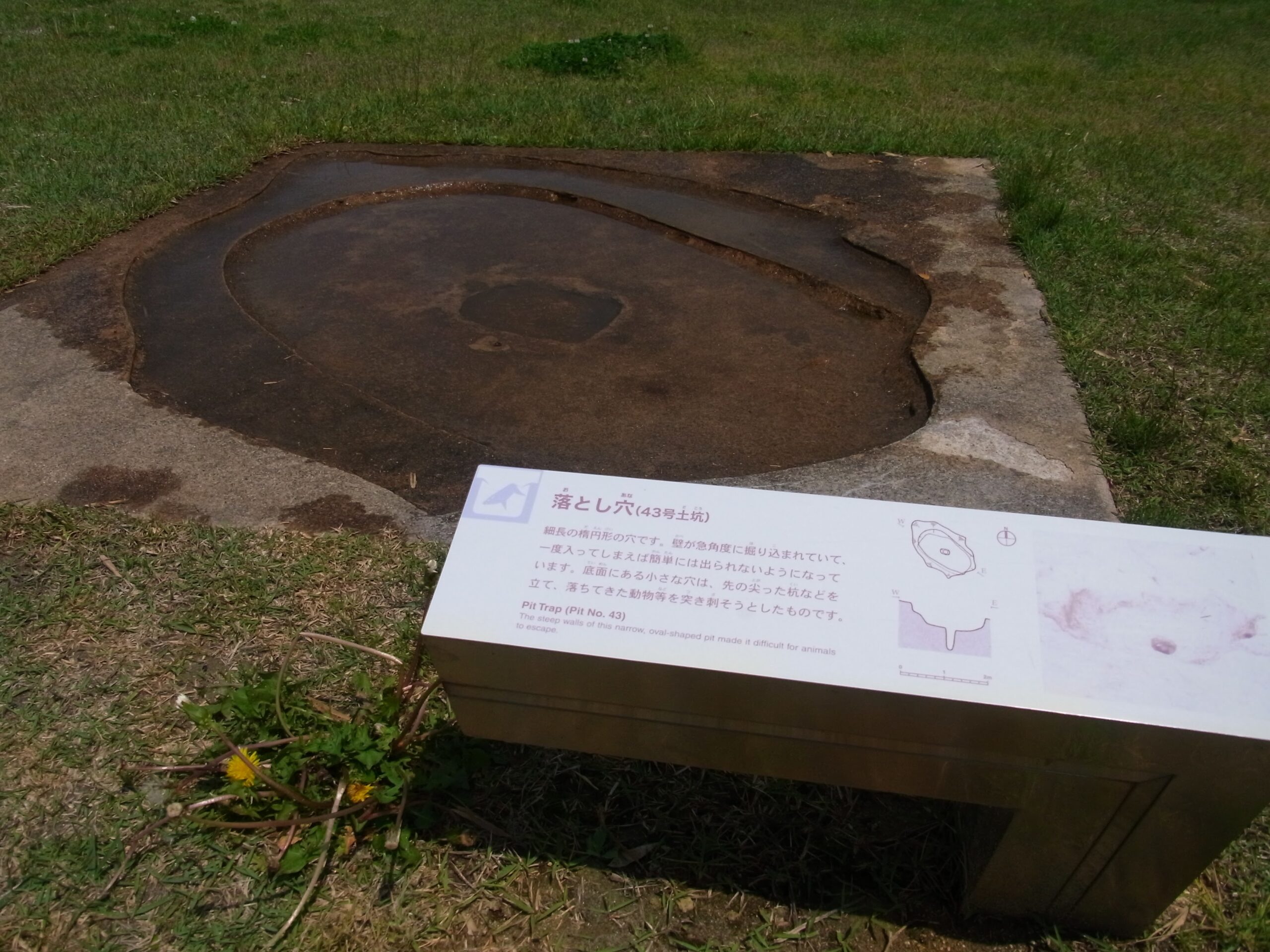 動物などを捉える「落とし穴」。底に竹槍みたくとがったものを差したりもしてたらしい。こわ〜〜〜。