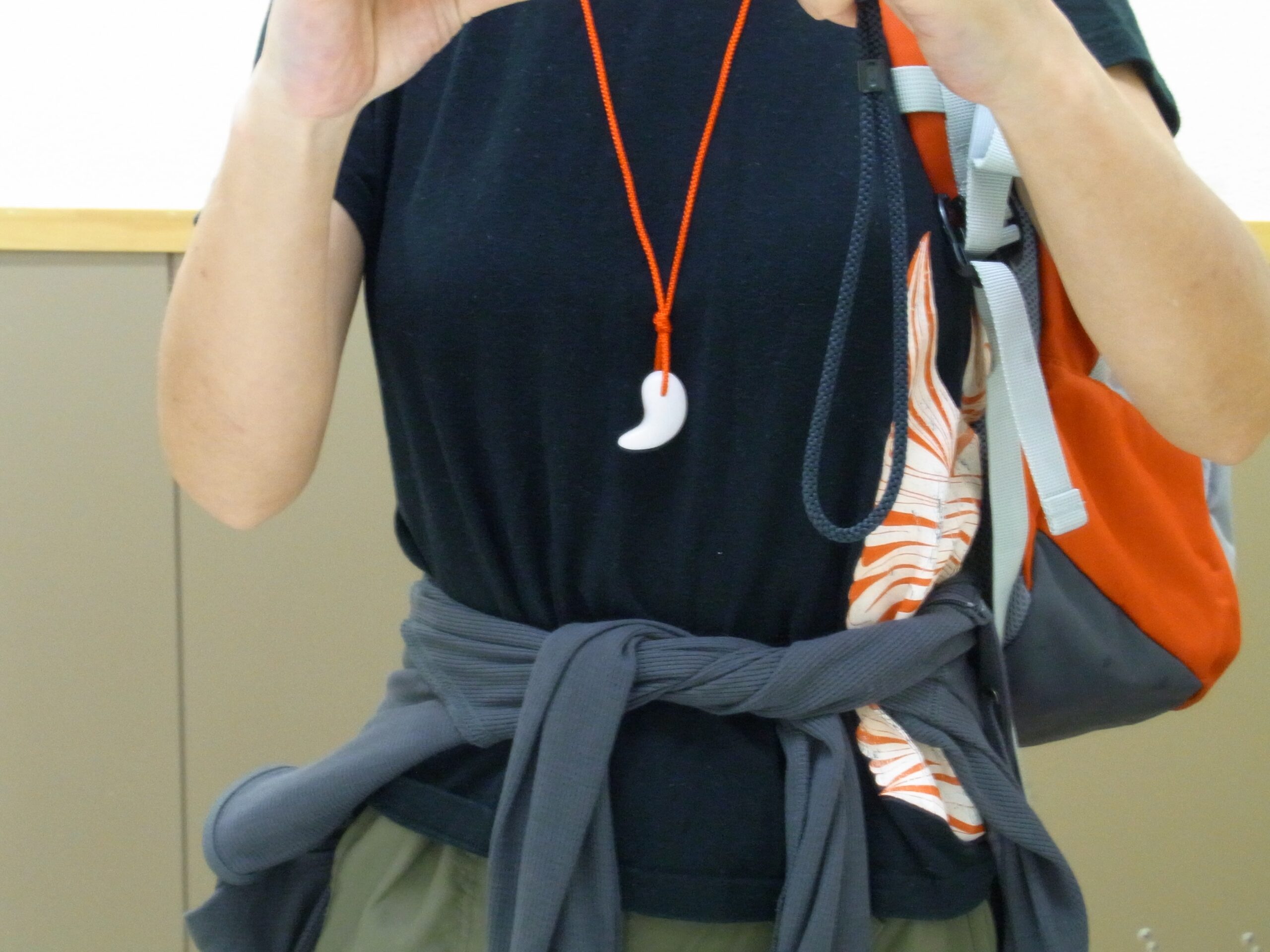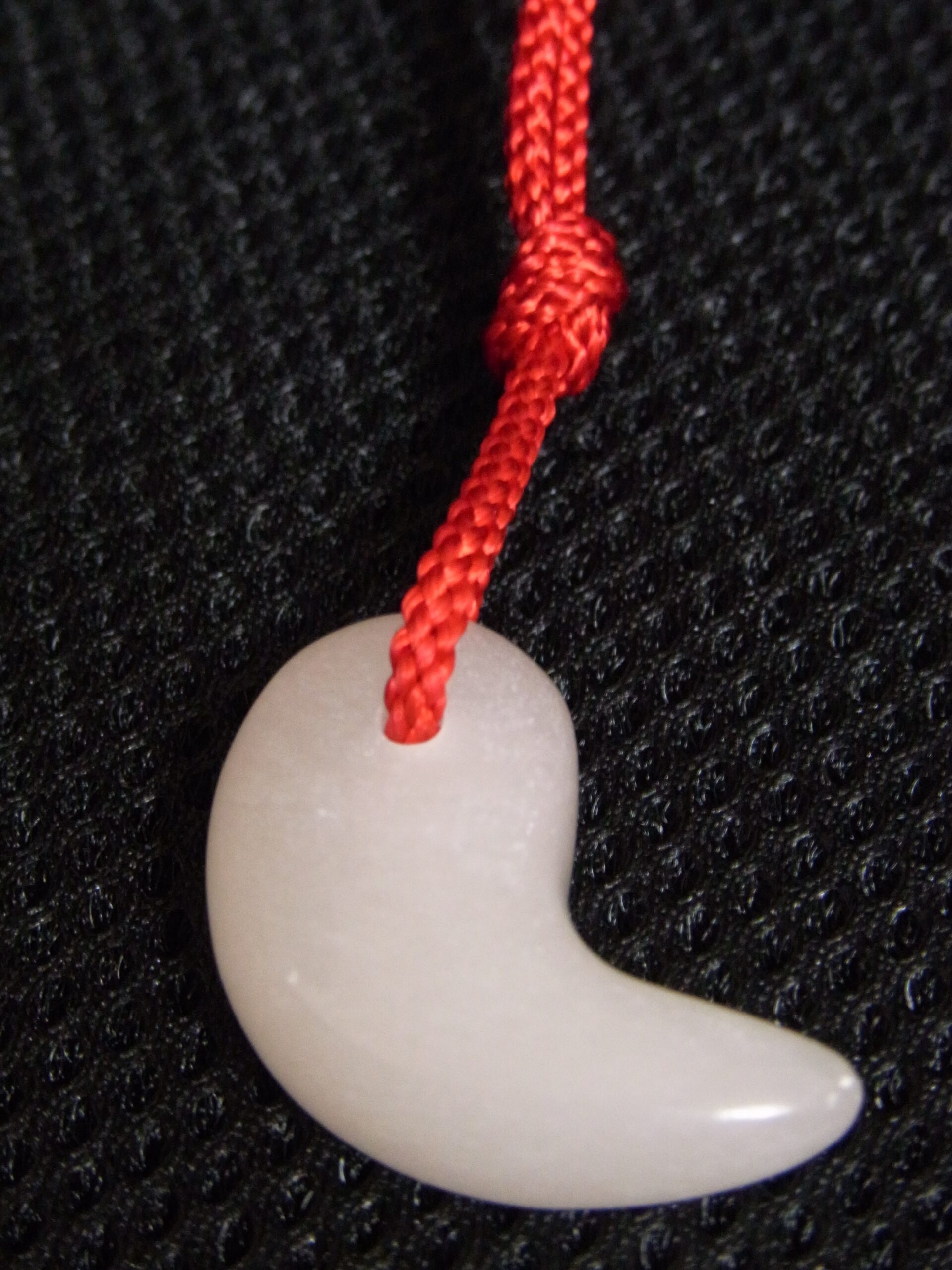 最後に少量のワックスみたいので磨いて、ひもを通してできあがり!世界にひとつだけの「マイ勾玉」ができあがります。