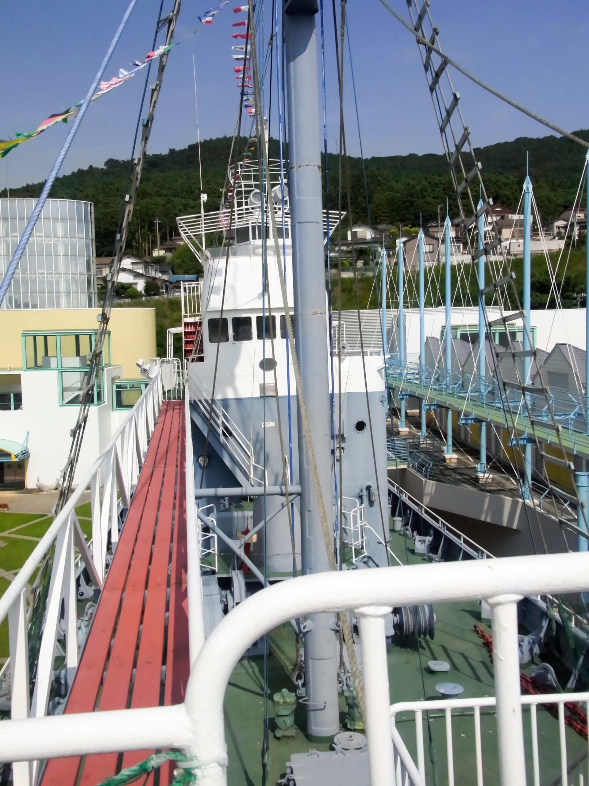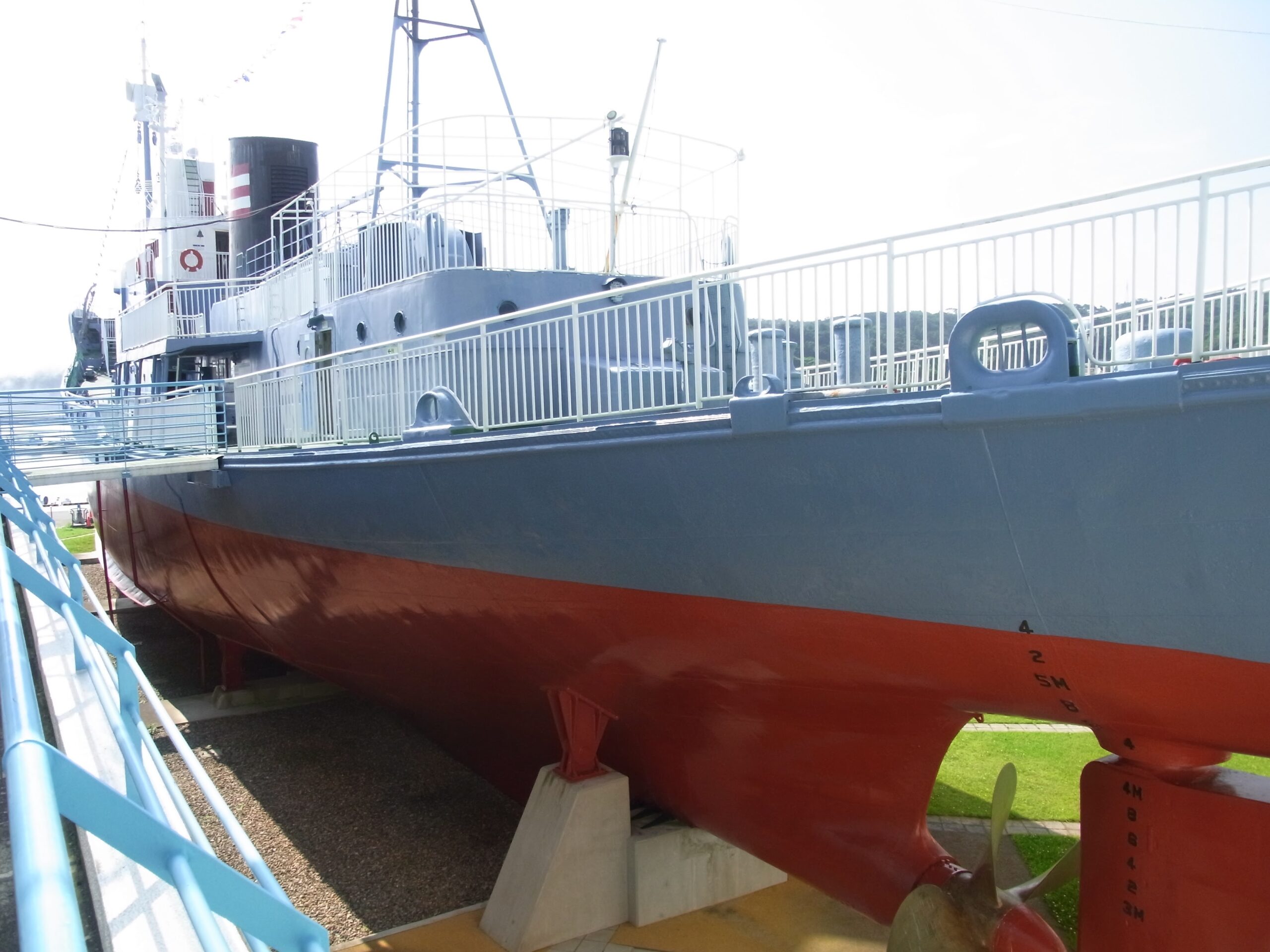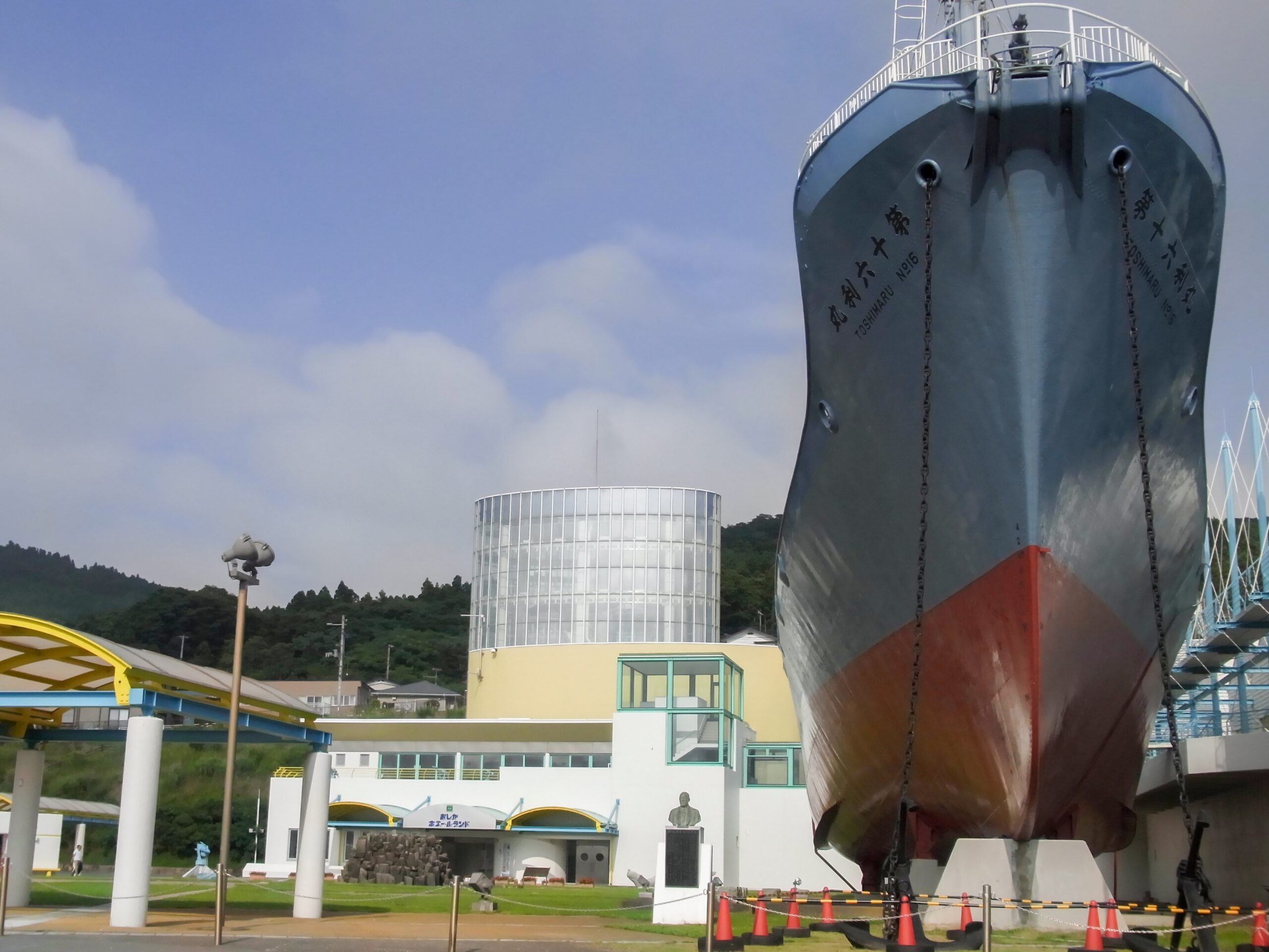 どど〜〜んと、まるで宇宙戦艦ヤマトのような配色の船がそびえ立つ入り口。