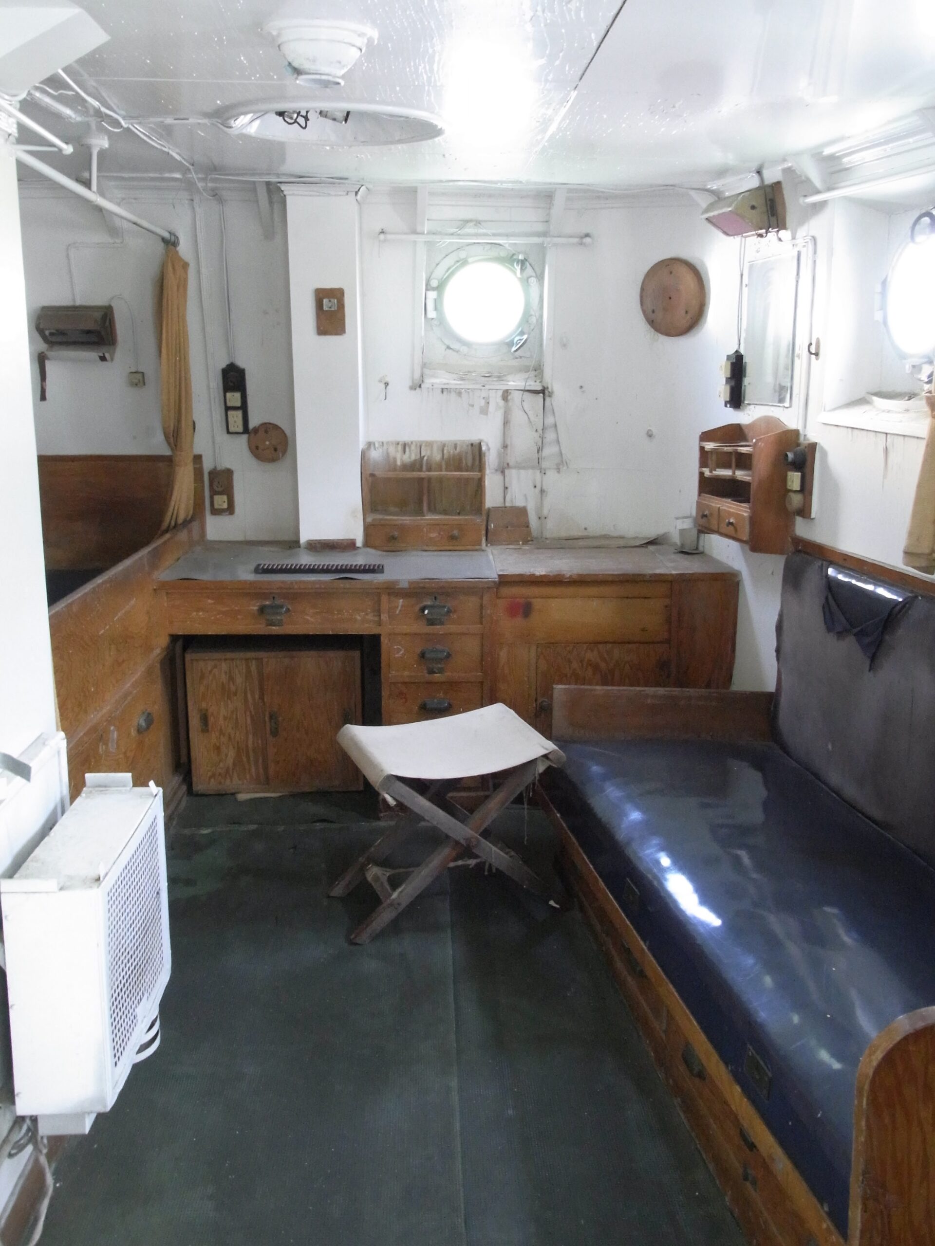 実際に使っていた船室。船長の部屋には航海日誌や当時の新聞なども置いてありました。う〜〜ん、なんか生活感も微妙に残ってるな〜。