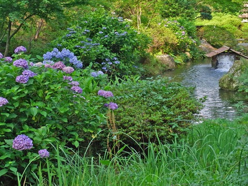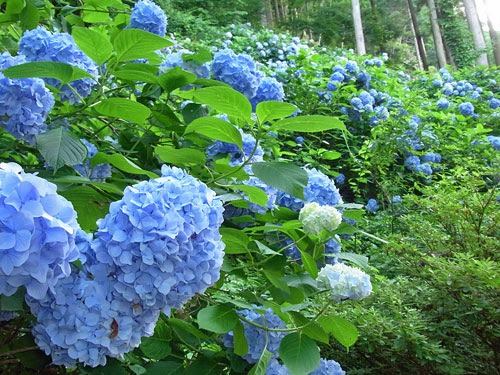おそらく関東やもっと西ではとうに終わってるのであろうが、あじさいがちょうど花盛り。山際に見事なあじさいの群れが棲息していた。