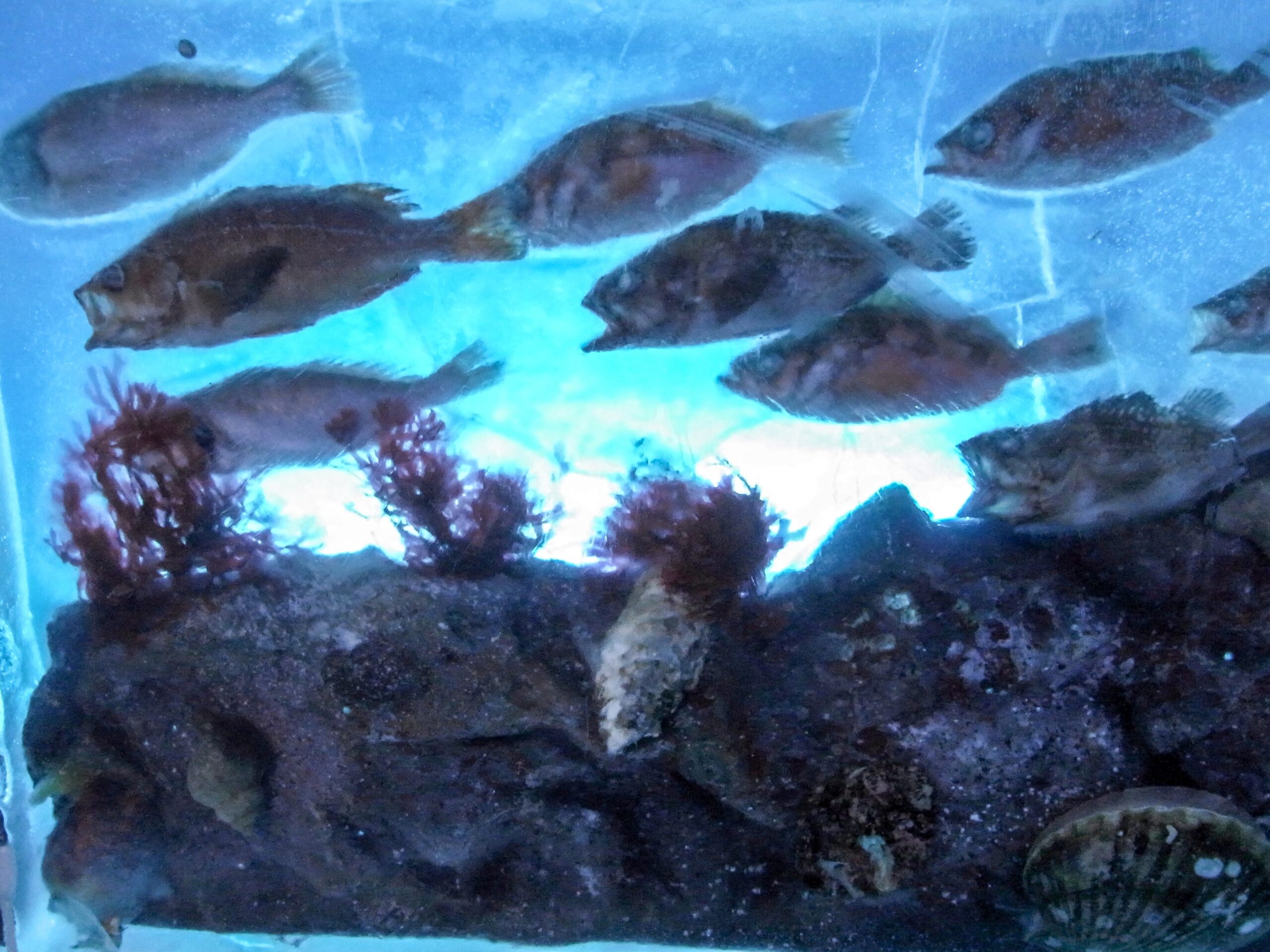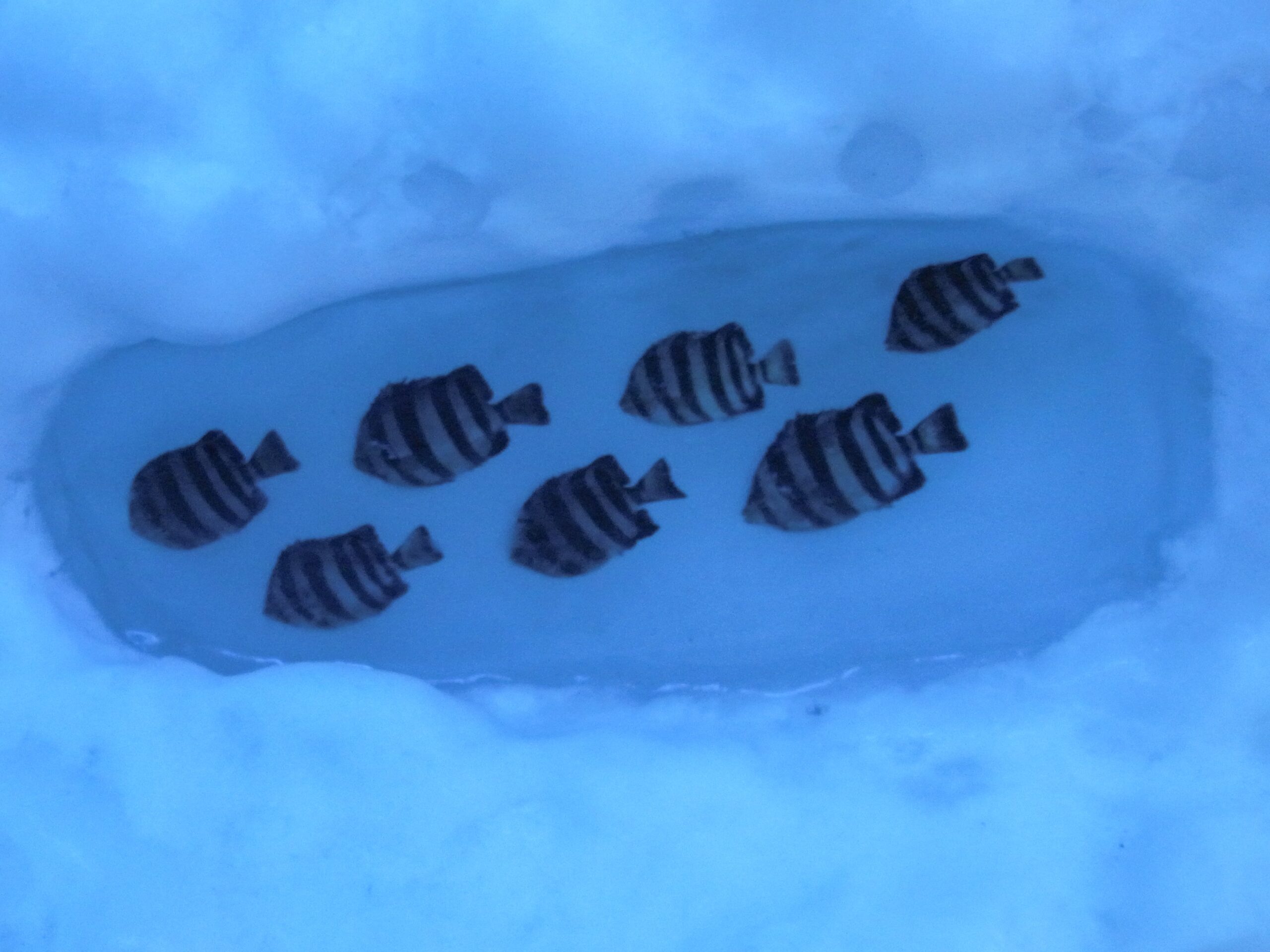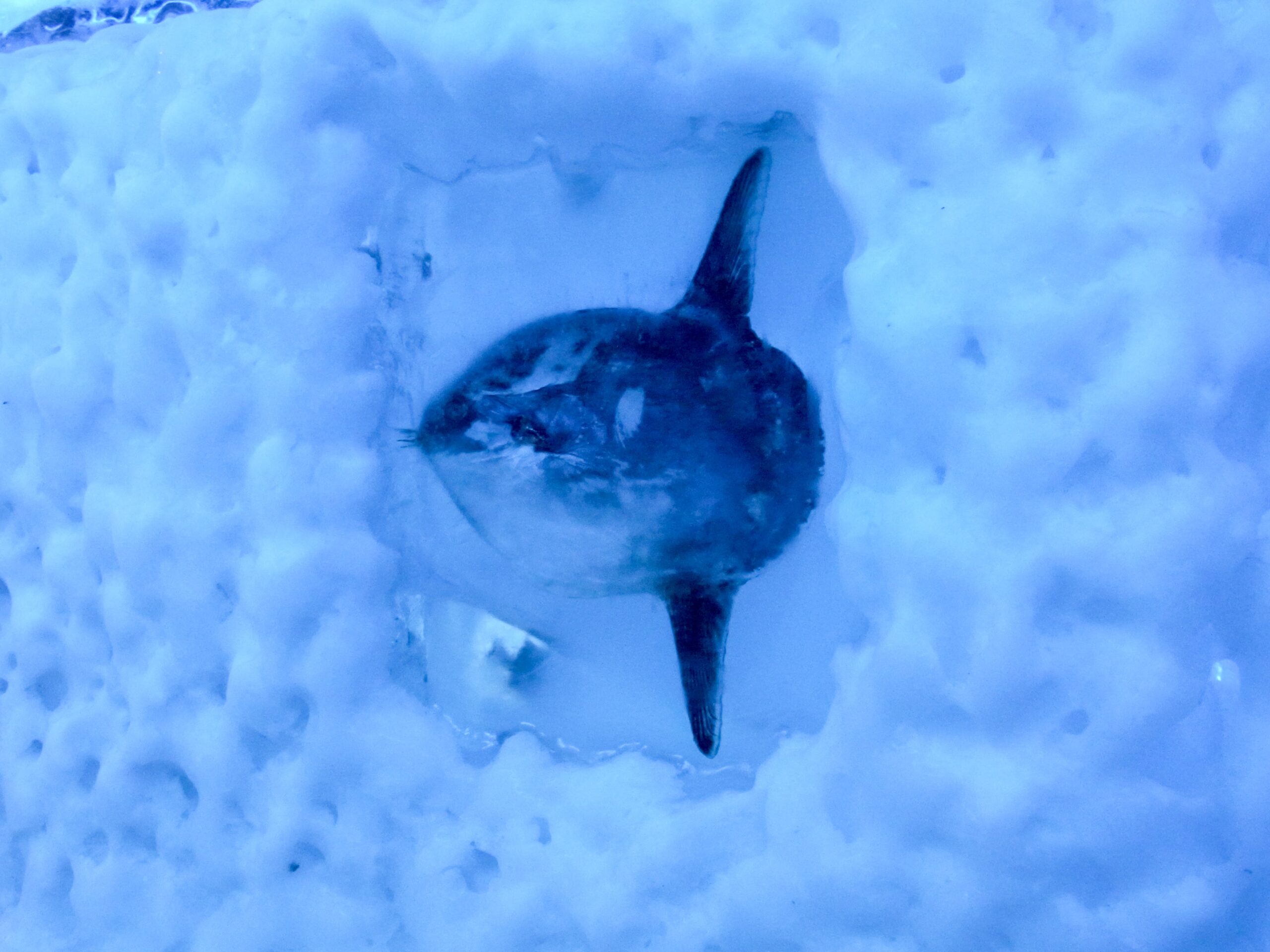 ちいちゃめのマンボウもいました。周囲ががちがちに凍り付いて、遭難して雪にうまった図のようになってますな。