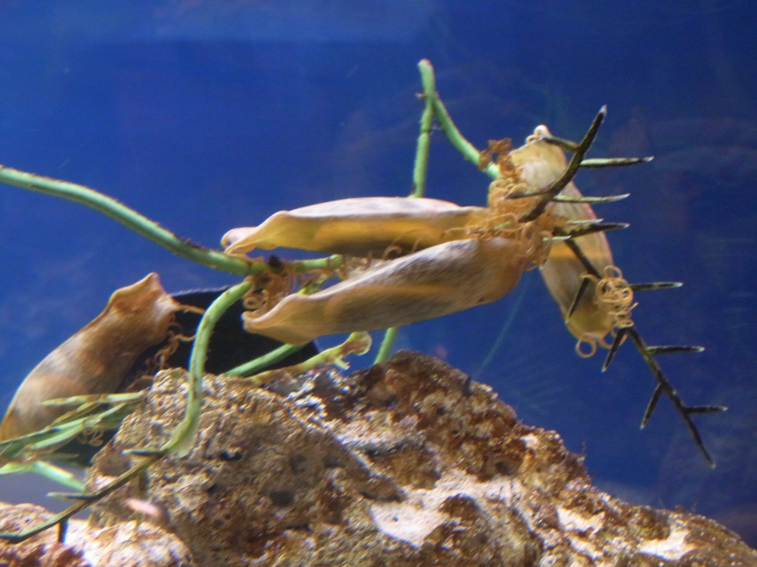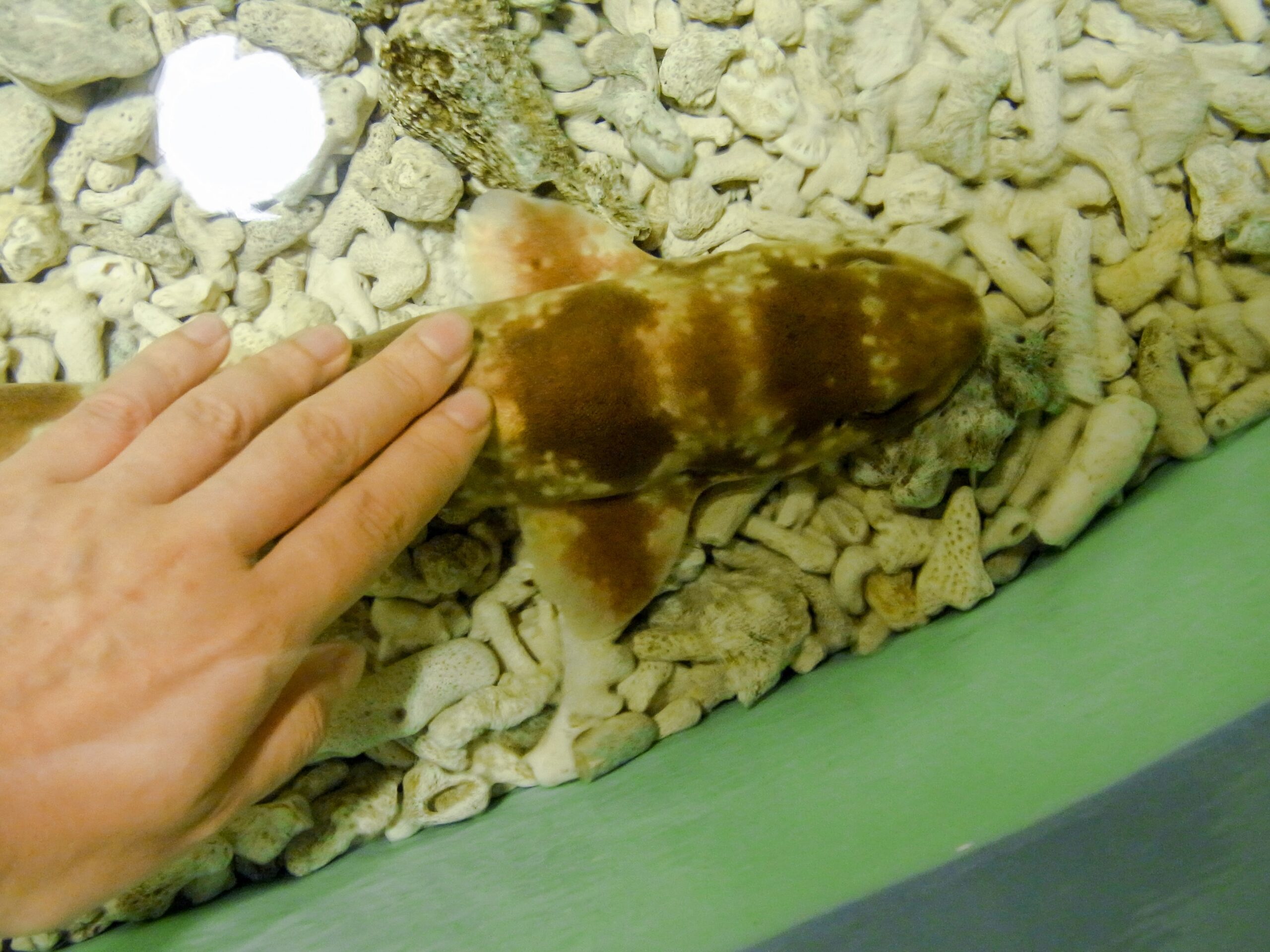 見るだけじゃなく、ペタペタ触れるタッチプールもあります。握るとびっくりするので、やさしくそぉ〜〜〜とね♡