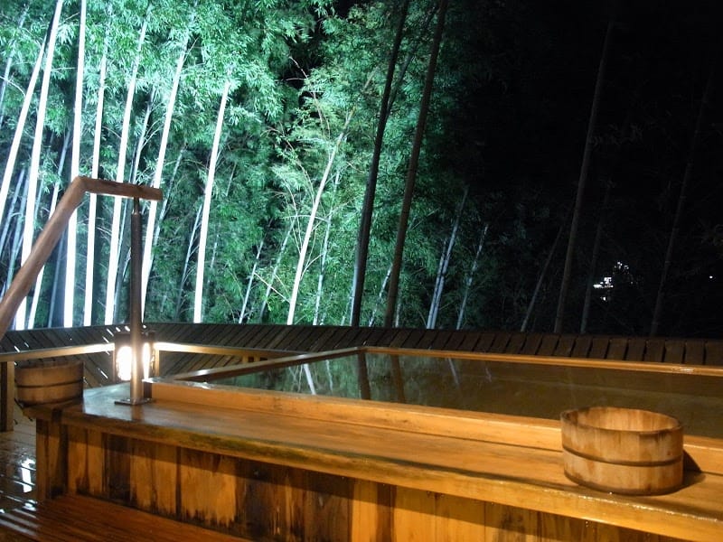 露天風呂は周囲が竹林になっているので、特にライトアップされた夜にいい雰囲気になる。まぁ、昼間は人が多かったので撮れてないというのもあるが(笑)