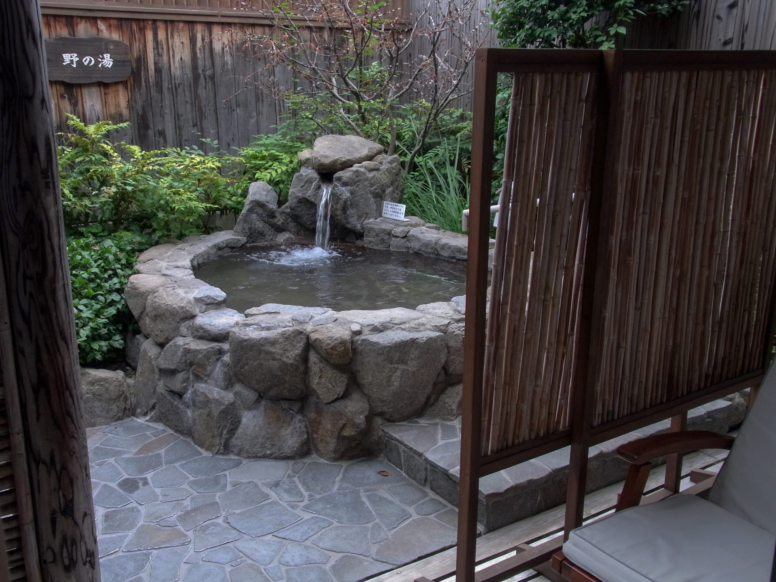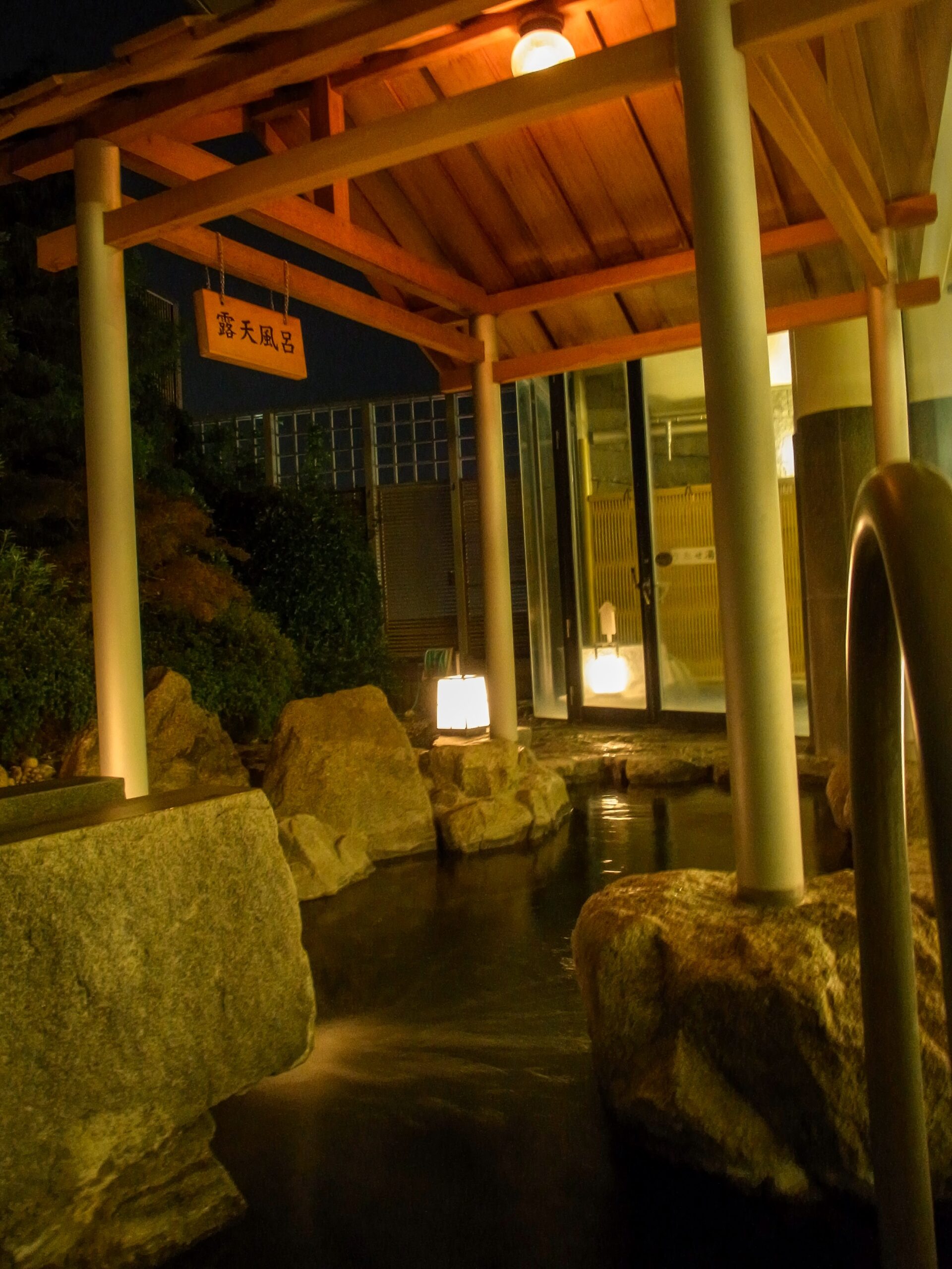 夜はこんな雰囲気になります。ちなみに露天風呂は部屋ごとにかなり違った趣のようで、好きなの選べたらよかったのになぁとちょっと思いました。