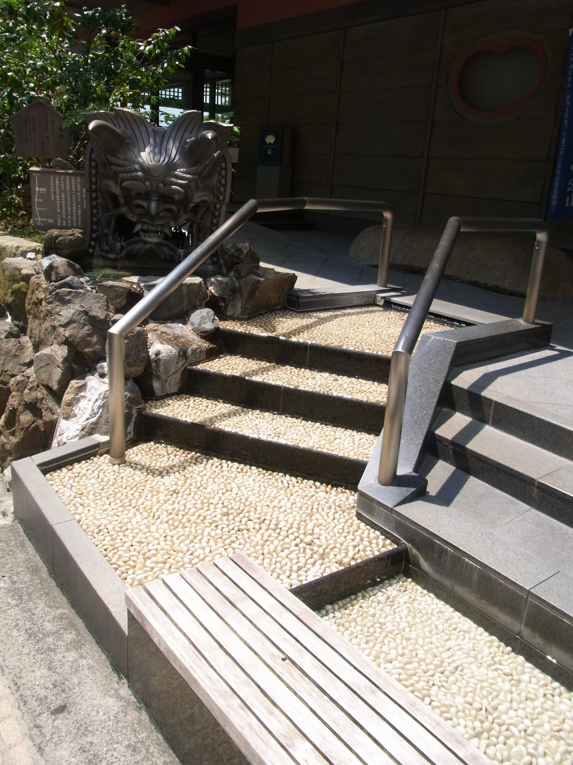 入り口前には足湯も設置。湯床の石が縦にささってるせいで、裸足で歩くとものすごい痛い(笑)