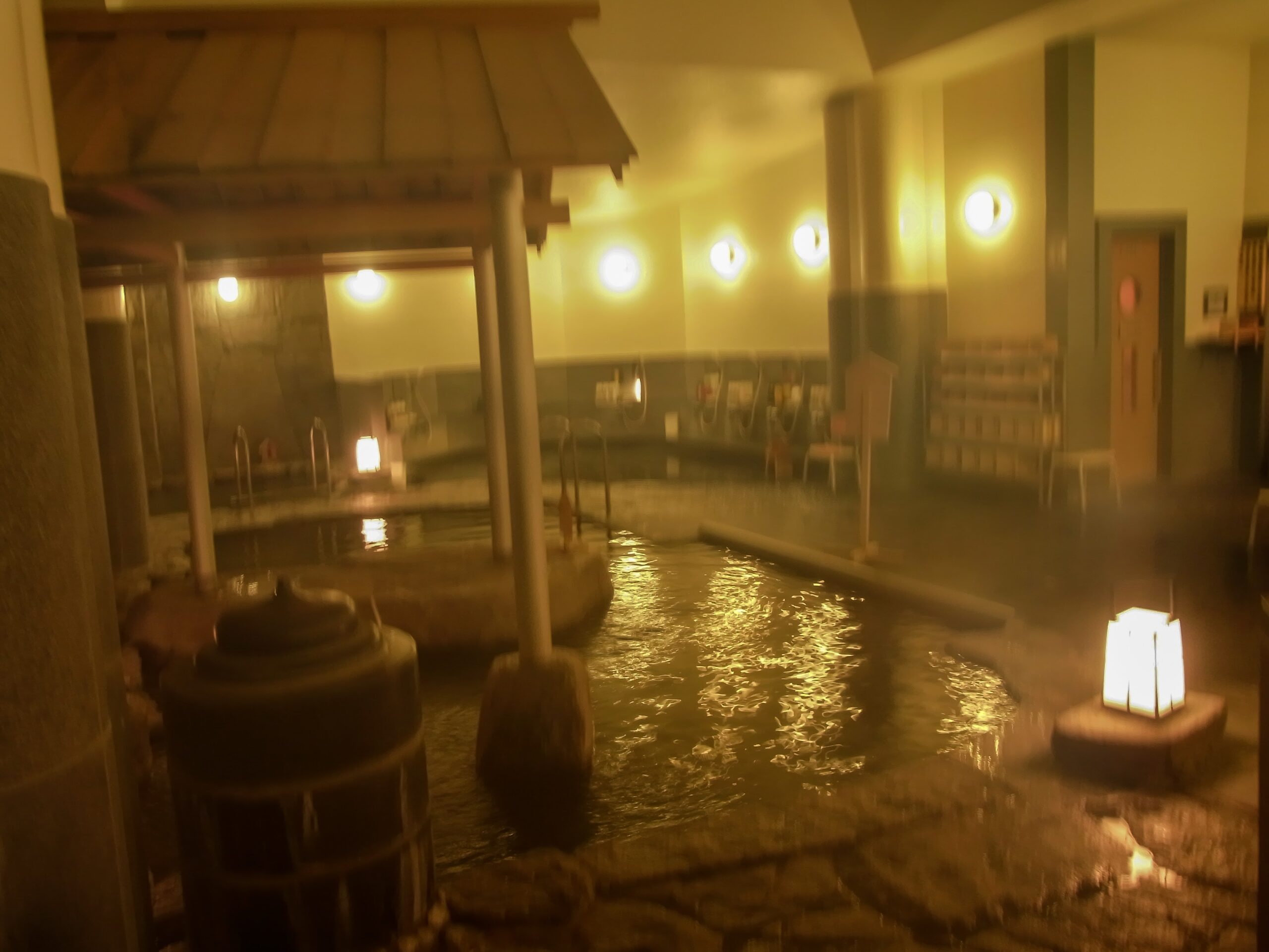 結局独り占めできたのは、深夜の入浴時間終了となるぎりぎりの時間帯。真夜中にひとりすっぽんぽんで何やってるんだ?と思いつつ、リポーター根性の怪しい人。