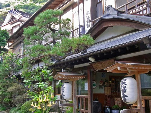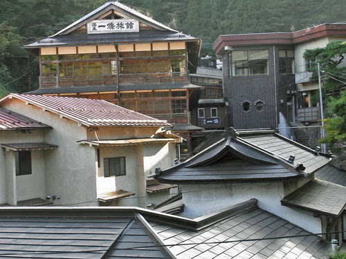 奥に見えるのは、創業500年という、これまた旧い木造の旅館。