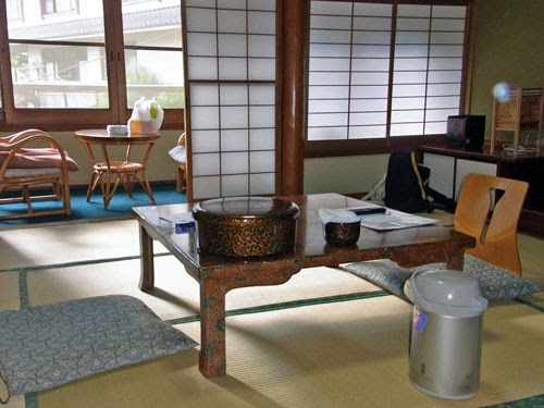 部屋は和室八畳に、前室、窓辺にミニ居間(裏に火鉢もあるよ)。もう暖房も入ってました。