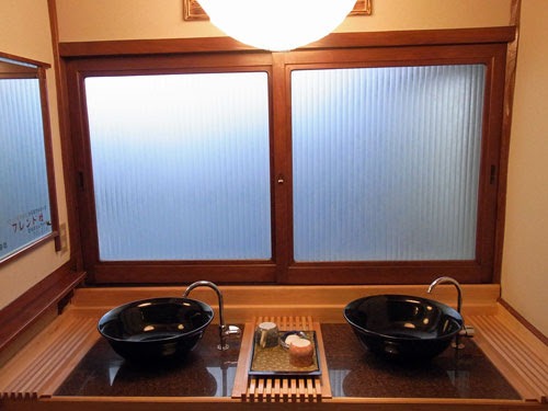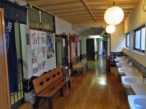 普通の温泉旅館かと思ったら、元々湯治宿だったようで、炊事場や風呂前にもずらりと並んだ洗面が。
