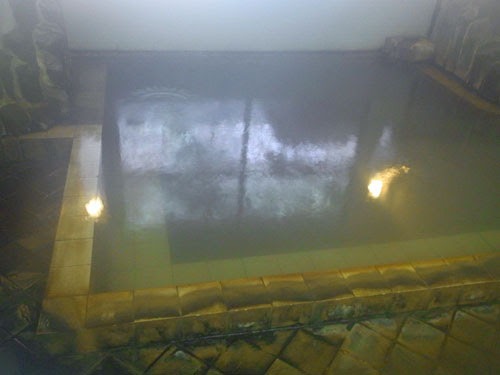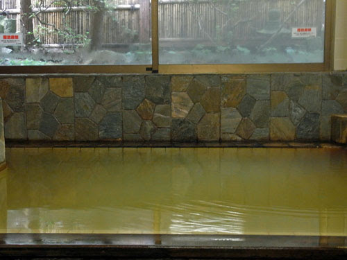 黄色っぽくて、湯元は鉄の匂いが強い。時間の経過と共に、濁りも加わってくるようです。