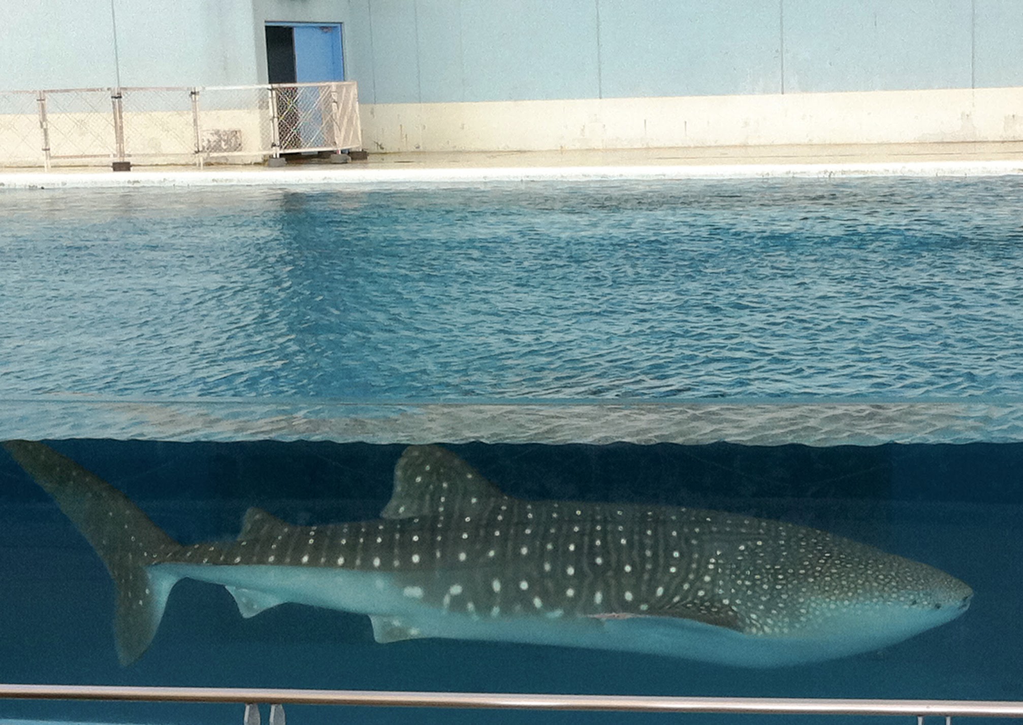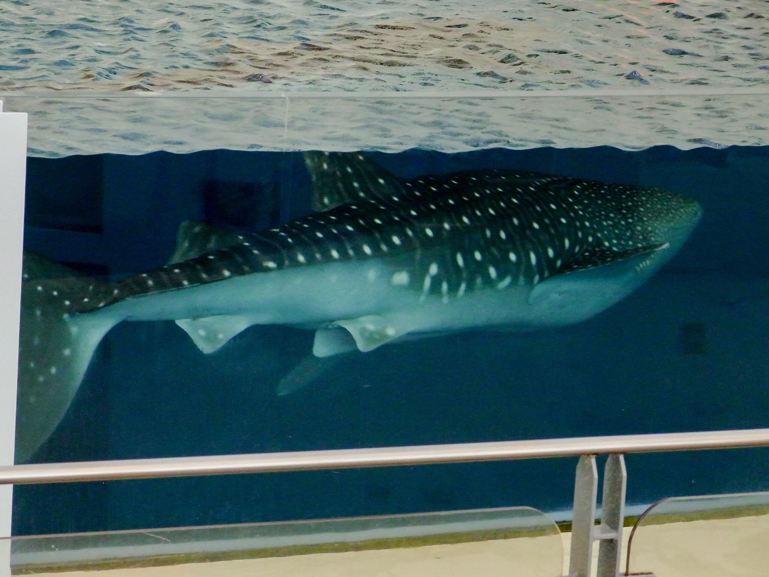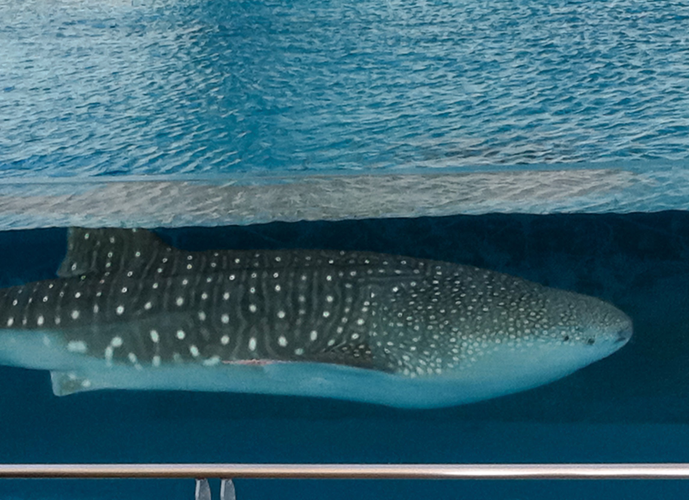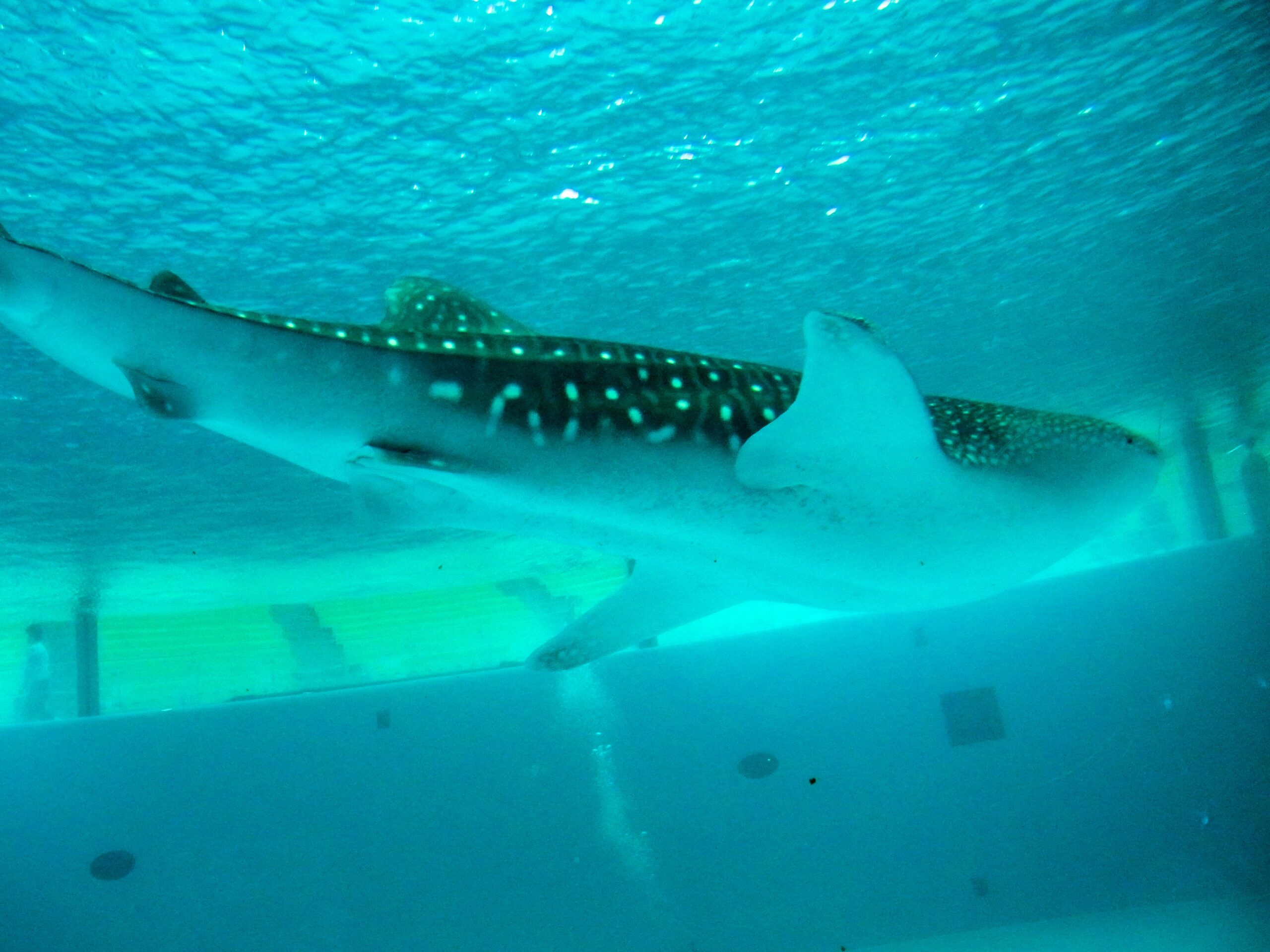 と、思ったら、ゆうゆう泳ぐジンベエザメの姿が水面下に!