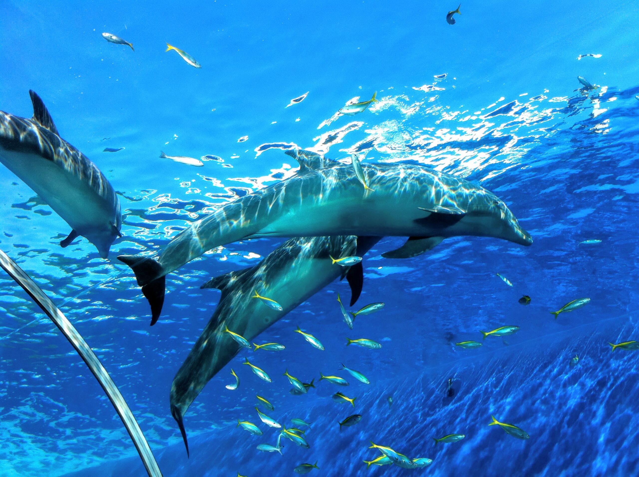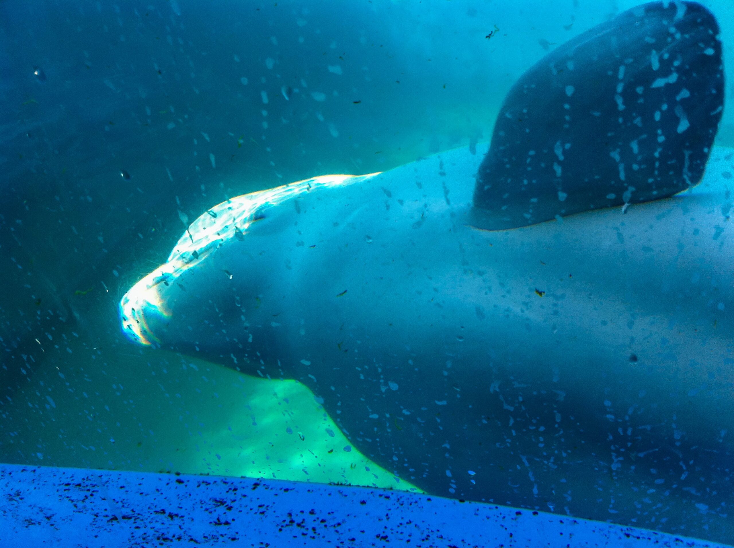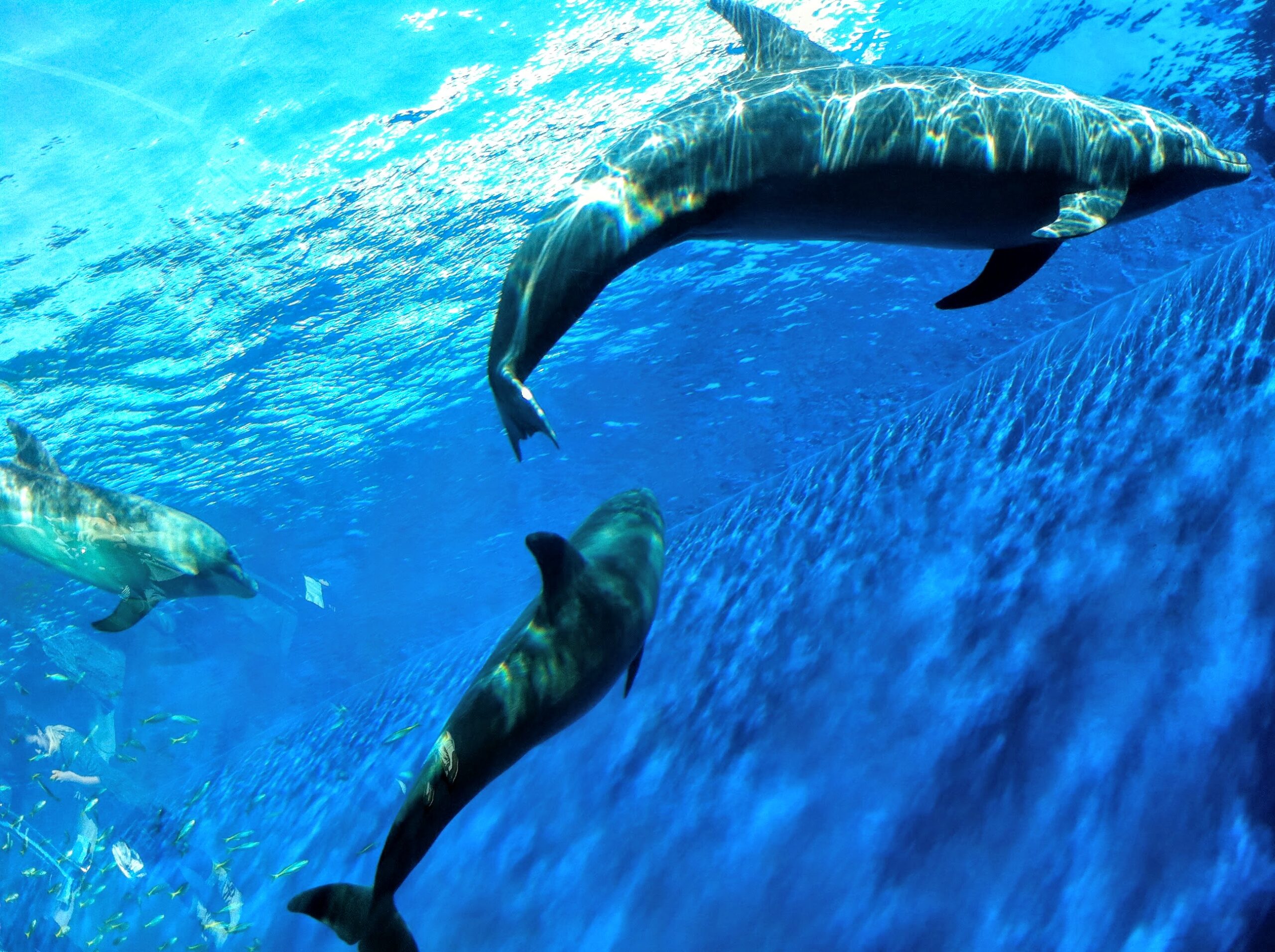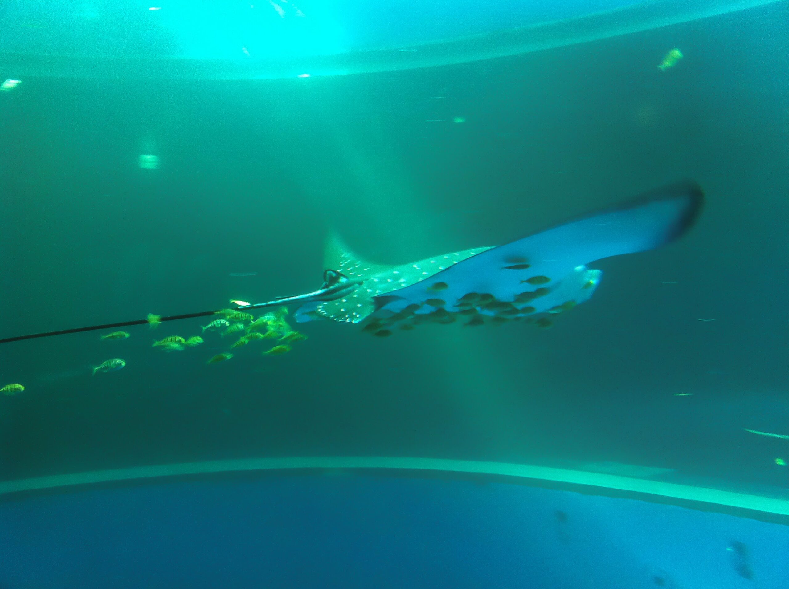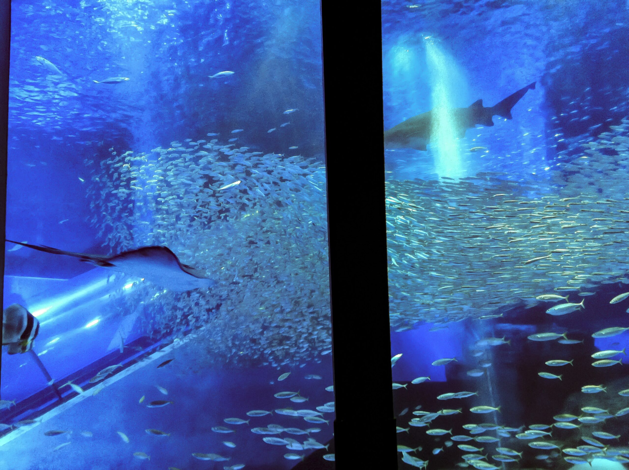 と、思ったら、ゆうゆう泳ぐジンベエザメの姿が水面下に!