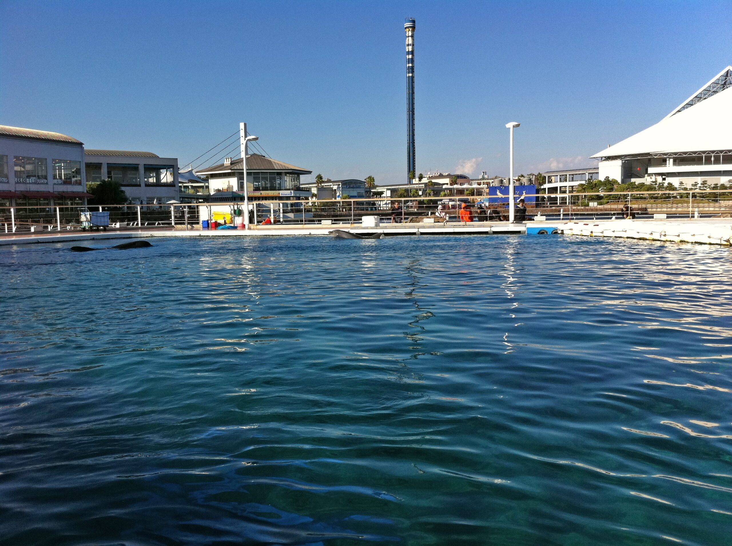 ふれあいラグーンの施設では、シロイルカの姿も見えました。