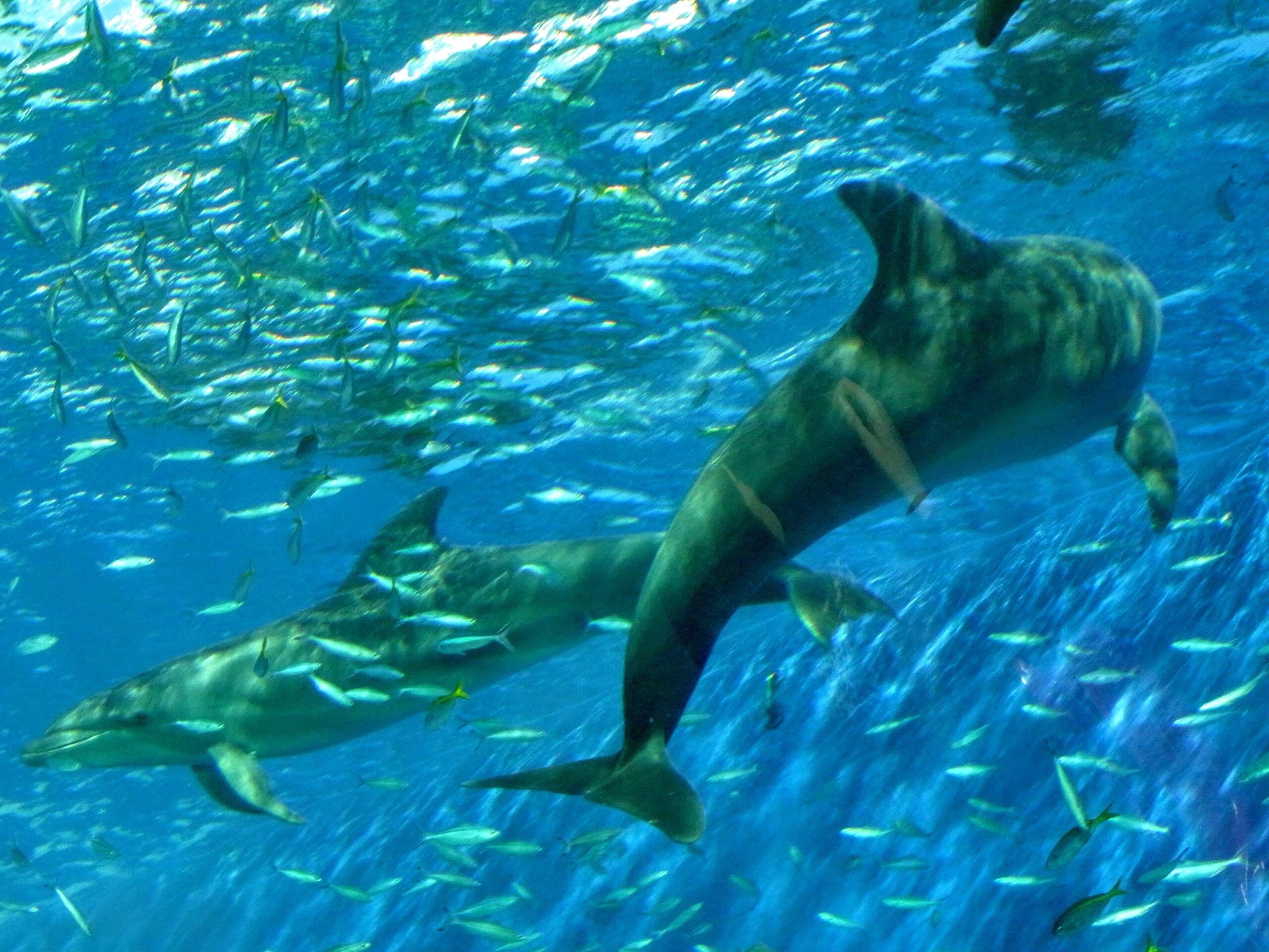この施設では、予約制でイルカと泳いだり、タッチしたりと触れ合いイベントがあります。