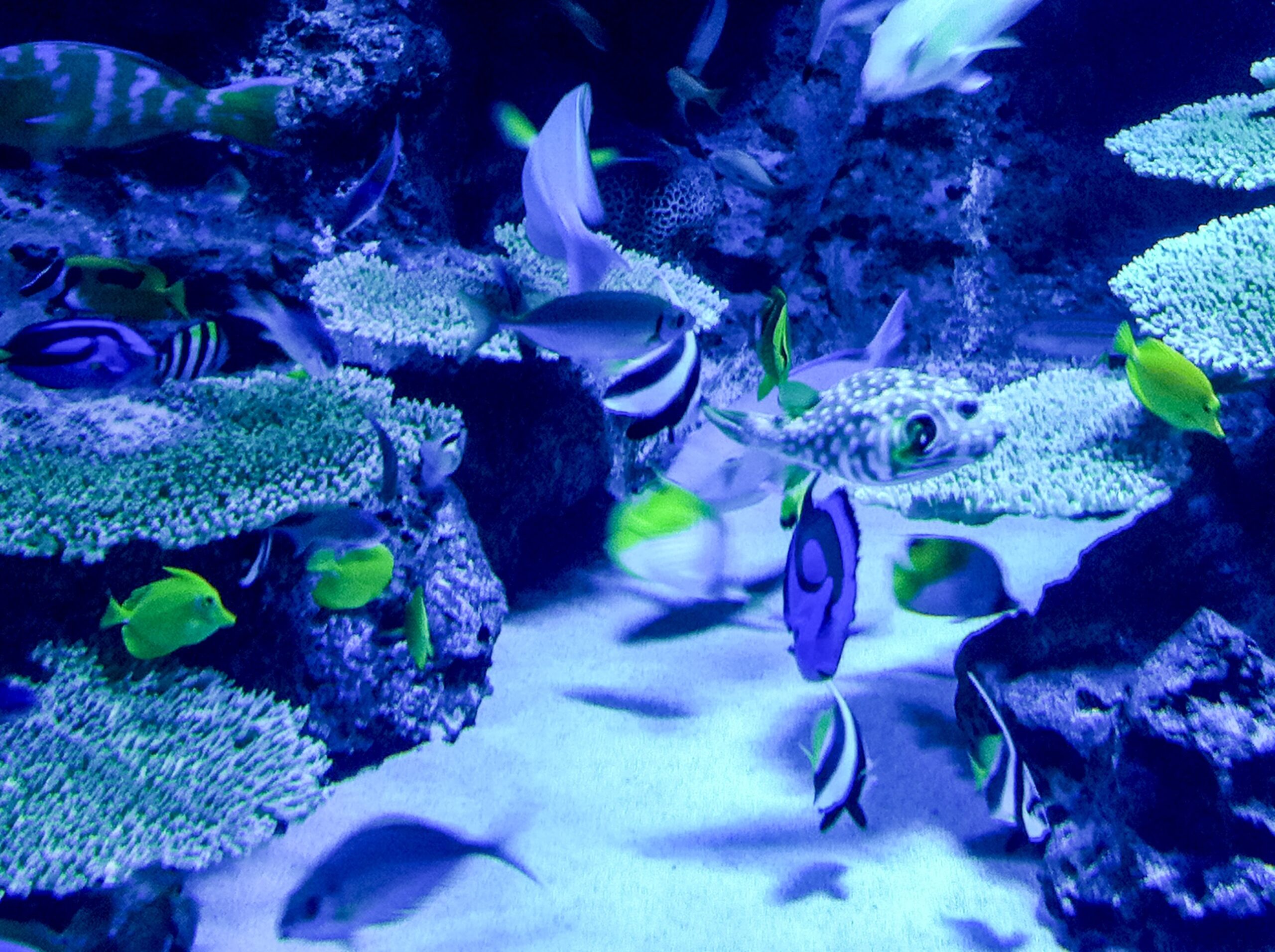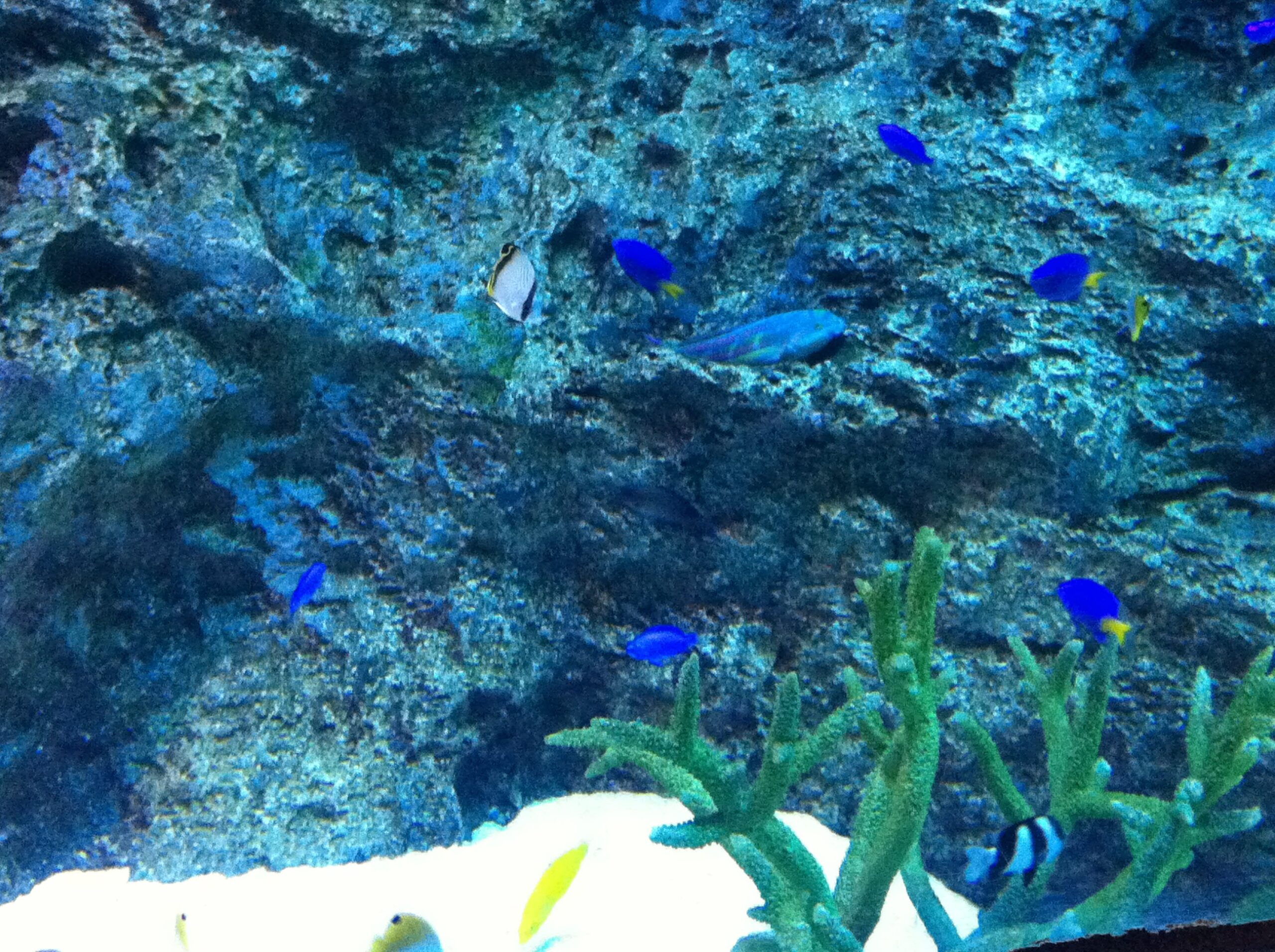 南の海を思わせるトロピカルなお魚たちも、広い水槽内で珊瑚や岩石のあいだを泳ぎ回ってます。