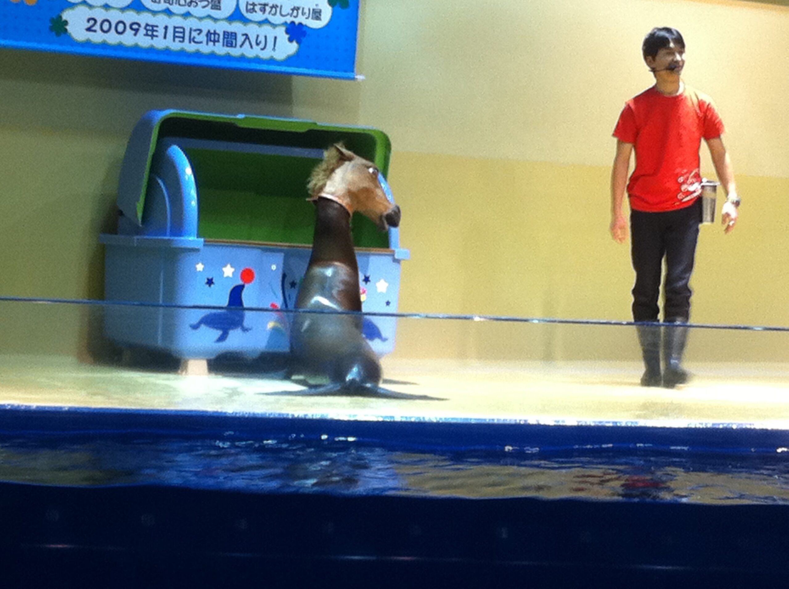 馬のかぶりものをしたアシカというのも、なんとも違和感を感じるものだ(笑)
