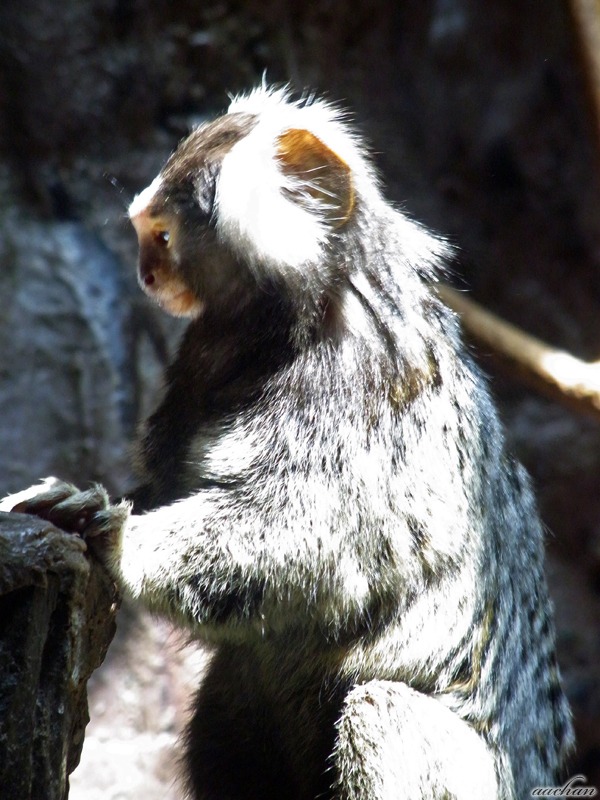 なんとか博士みたいな個性的な白髪頭のコモンマーモセット