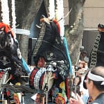 しかし、この後に続く太鼓のお囃子がもはや通行も困難な状態になり、慎重に人混みをかきわけながら進むも。。