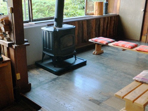玄関から入ってすぐ左には、ロビーというか待合室みたいなところがあるのですが、古い形のストーブがいい味をだしてます。