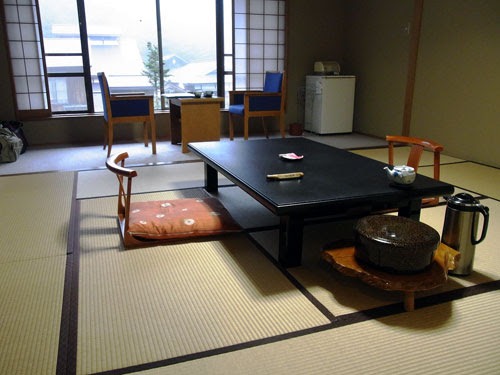 今回は結構直前だったこともあり、やや高価な西館に宿泊。広々とした十畳の和室でトイレつき。窓からは中庭と入り口が見下ろせます。