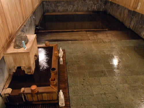 ここには露天風呂はないのだけれど、とっても情緒のある2つの浴槽に入る事ができます。