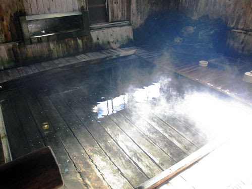 ブナの浴槽は底板もブナの分厚い木のすのこ上になっていて、おしりの下からぶくぶくと源泉がそのまま沸き上がってくるのです。